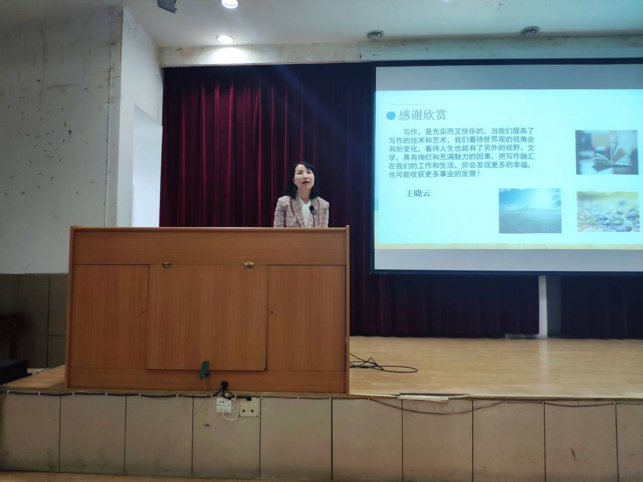 2020年12月8日,晚七点整,著名作家王晓云应beats365唯一官方网站邀请,在江南1号教学楼报告厅与基础写作任课教师韩文霞一起,为汉语言文学专业2020级员工讲授“小说创作”一课。同学们对王晓云老师的到来表示热烈的欢迎。汉语言文学系主任李婷到场听课。