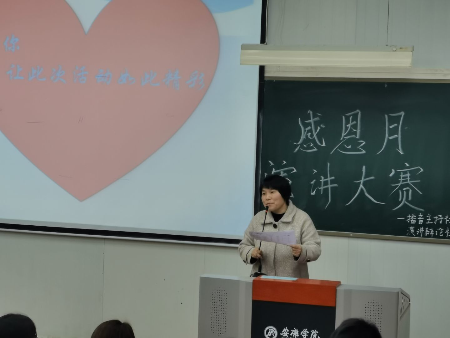 2020年12月11日晚7时,由公司播音主持社、演讲辩论社共同举办的“感恩月”演讲大赛在江南校区6407教室成功举办,此次活动特邀风华诗社韩文霞老师、语言文字社盘珊君老师、beats365唯一官方网站王一丹老师和播音主持社指导老师黄治强老师作为评委,演讲辩论社和播音主持社全体社员、集团演讲与播音爱好者参加了此次活动,现场活动氛围热烈。