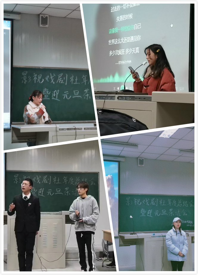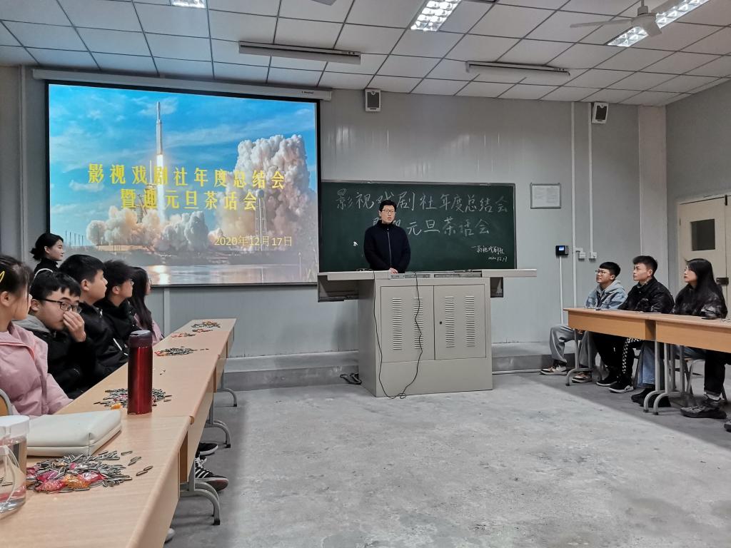 最后,影视戏剧社指导教师邹棠华老师对剧社2021年活动做了规划,2021年上半年会主办一场建党一百周年的大型文艺晚会,下半年全力参与第八届校园艺术文化节展演,并提出在新的一年里尝试制作一些影视方面的作品。他也希望全体同学都能够积极参与表演,能够在社团的活动中一次一次地锻炼自己,共同成长。