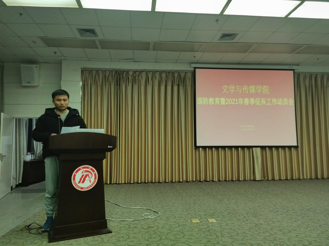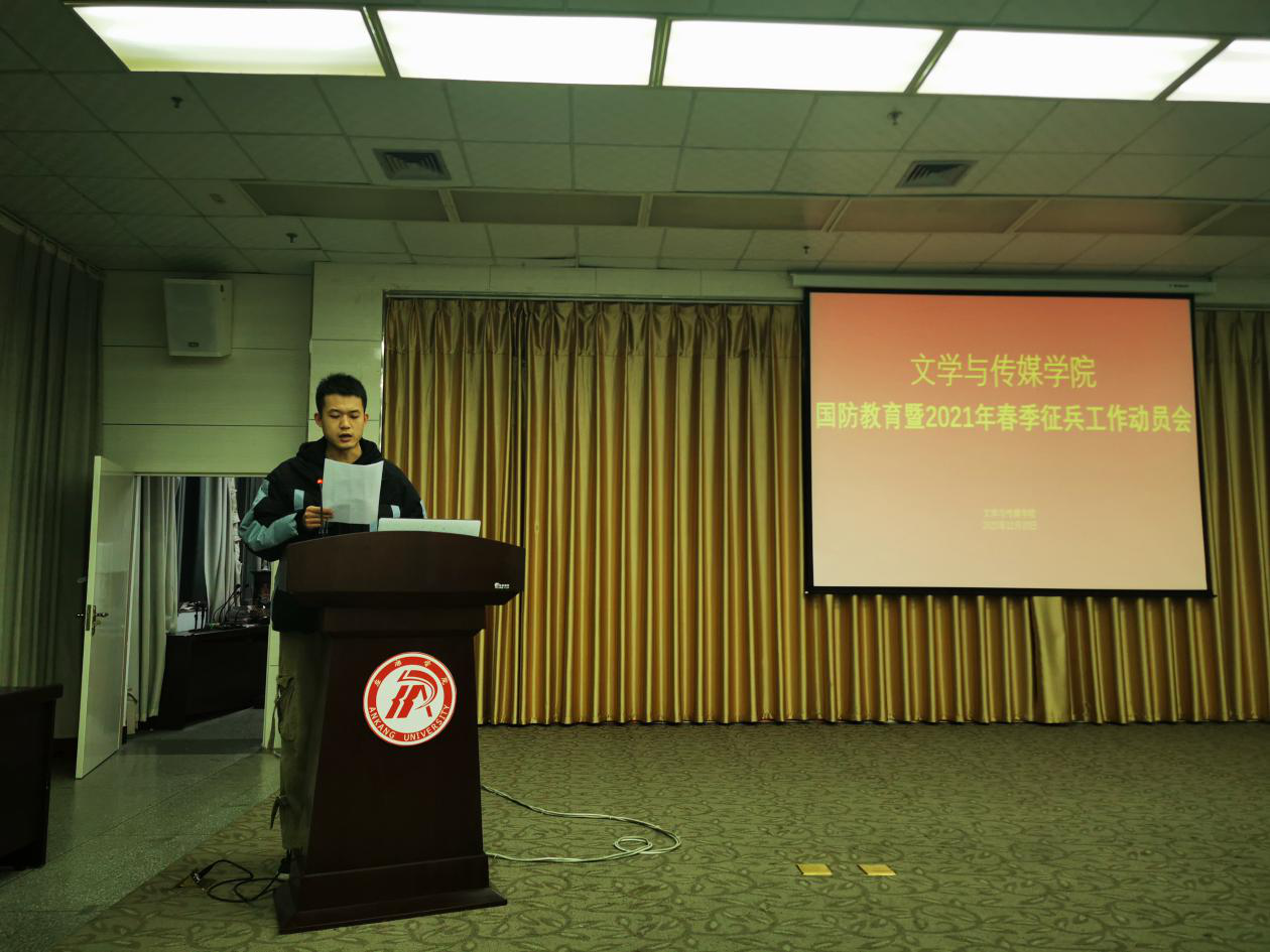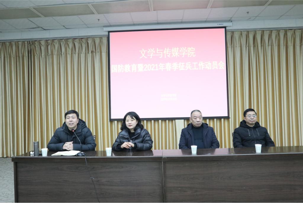 为进一步贯彻落实《新时代爱国主义教育实施纲要》要求,加强新时代老员工爱国主义教育,增强国防意识,激发广大青年老员工积极响应祖国号召参军入伍,保家卫国,2020年12月30日晚19:30,beats365唯一官方网站联合学工部在图书馆六楼报告厅召“开国防教育暨2021年春季征兵工作动员会”,学工部王瑞卫,beats365唯一官方网站公司党总支副书记杨海蓉、学工办副主任薛涛、辅导员邹棠华老师,退伍老员工代表冯瑞瑞、赵天齐及全院有志参军的200余名同学参加会议。会议由薛涛主持。