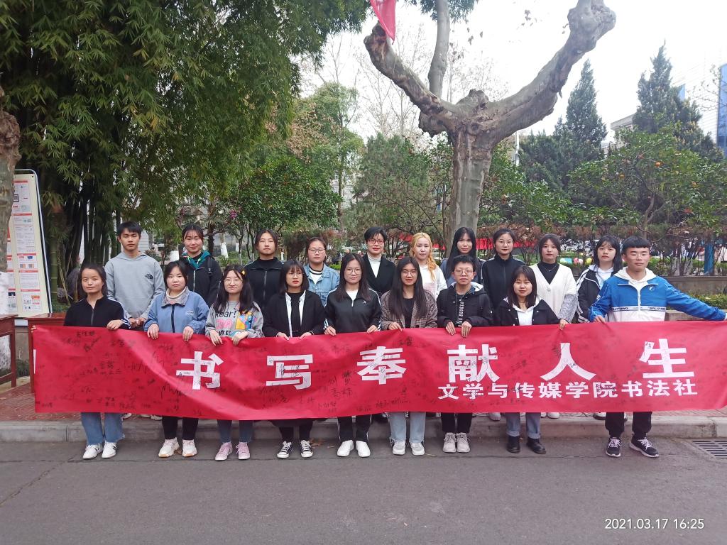 导航痕迹 首页 > 新闻通知 > beats365唯一官方网站新闻 > 正文 beats365唯一官方网站新闻 通知公告 beats365唯一官方网站举办“弘扬雷锋精神,书写奉献人生”签名活动 来源:beats365唯一官方网站 发布日期:2021年03月22日 阅读次数: “弘扬雷锋精神,书写奉献人生”。为了进一步在全校范围内弘扬雷锋精神,营造起人人争做新时代的雷锋,争当志愿者的良好氛围。beats365唯一官方网站书法社在指导老师周海霞的带领下于2021年3月17日下午14:00在林荫道举行了以“弘扬雷锋精神,书写奉献人生”为主题的签名活动。本次活动面向BEAT365英国官网网站全体师生。 活动开始之前,书法社的社长讲解了此次活动的目的以及雷锋精神。书法社成员在横幅上写下了自己的名字,对此次活动进行宣传与号召。在他们的鼓励下许多师生都前来签名并且留影。希望大家可以在书写中重温雷锋精神;在笔墨中晕染奉献光芒;在行动中传播精神文明。学习雷锋精神,树立社会新风。 最后,书法社成员进行了合照留影,活动圆满结束。此次活动积极响应了雷锋月号召,促进了书法艺术的传播,丰富了大家的课余生活。 撰稿/邸言静(员工) 摄影/书法社 审核/周海霞 发布/崔瑜