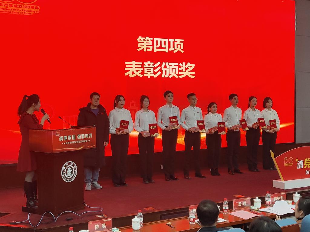 当日下午3点,现场总决赛暨颁奖典礼在西安交通大学科技厅正式开始。活动现场播放了选手展示视频,来自西安交通大学、陕西师范大学、长安大学等高校的9名选手依次登台宣讲,现场角逐特等奖和一等奖。比赛半场,其余在决赛中脱颖而出的我省各高校的优秀宣讲人为大家带来集体诗朗诵《青春中国》,将比赛氛围推向高潮。公司员工杨钰宣讲题目为 《志在千秋,梦在前》,结合自身疫情期间的两次志愿者经历,讲述了中国历代优秀青年心系祖国、服务人民的精神;郭杨宣讲题目为《以青春之名,谱写时代华章》,通过讲述山东省泗水县苗馆村党支部书记助理吴天洋的事迹,展示了一代代中国青年奋斗不息、奉献不止的伟大精神。在最终的评审中,两人均荣获二等奖。