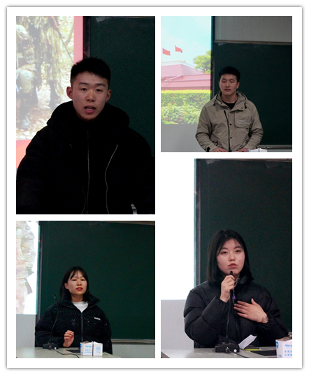 参会的四名退伍员工相继介绍了各自的军营经历,分享了在部队的收获与体会。“当兵后悔两年,不当兵后悔一辈子”,新兵连的磨炼、下连队的适应、退伍的留恋是四位同学满满的回忆。两年军旅生涯不仅为国防建设作出了贡献,更重要的是锻炼了军事素质、丰富了人生阅历,特别是在磨炼意志、团结拼搏和战友情怀等方面收获了宝贵的精神财富。他们表示:从美丽的大公司园步入整齐划一的军营,是梦想,是勇气,是奉献,在部队这个大熔炉,大家百炼成钢,无悔选择,无悔青春。复学后,将继续发扬人民军队的光荣传统,用自身的行动为身边的同学做好表率。在未来的学习、工作和生活中,将以百倍的信心和万分的努力去迎接更大的挑战,用汗水去谱写美好的明天。