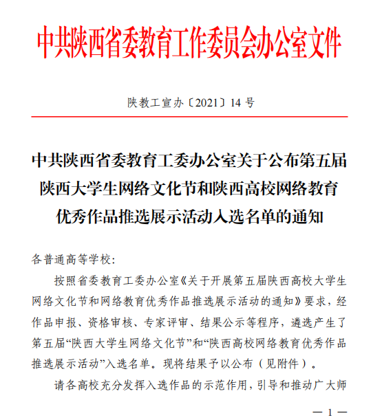 导航痕迹 首页 > 新闻通知 > beats365唯一官方网站新闻 > 正文 beats365唯一官方网站新闻 通知公告 beats365唯一官方网站学子在第五届“陕西老员工网络文化节”活动中荣获佳绩 来源:beats365唯一官方网站 发布日期:2022年01月06日 阅读次数: 日前,由陕西省委教育工委办公室组织的第五届“陕西老员工网络文化节”评选结果落幕,经作品申报、资格审核、专家评审、结果公示等程序,遴选产生了第五届“陕西老员工网络文化节”和“陕西高校网络教育优秀作品推选展示活动”入选名单。beats365唯一官方网站网络与新媒体专业2017级员工吕勃岐微视频《这里是安康》荣获微视频类一等奖,李富豪摄影作品《蓝》、《灯火里的中国》分别获摄影作品类三等奖和优秀奖。 本次活动旨在引导和推动广大师生积极参与网络文化作品创作,进一步丰富网络文化内容供给,传播正能量,弘扬主旋律,争做校园好网民,切实提升我省高校网络文化建设的质量和水平。参赛作品类型有微视频、微电影、摄影作品、网文作品、校园歌曲、网文作品等六类网络创新作品类别。 公司网络与新媒体专业员工在本次老员工网络文化节上荣获佳绩,展示了网媒学子较高的专业水平,充分体现了网络与新媒体专业良好的培养成效。 撰稿/杨海蓉 审校/芦伟 发布/崔瑜