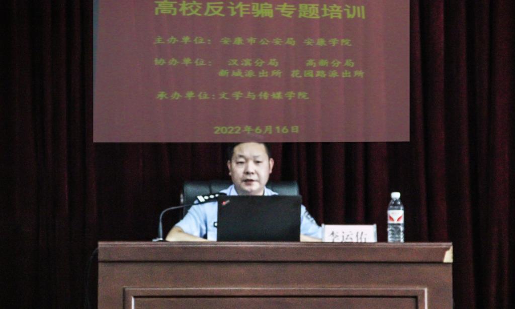 为深入贯彻落实习近平总书记对打击治理电信网络诈骗犯罪工作的指示精神,进一步提升公司师生防范“电信网络诈骗”意识和能力,遏制“电信网络诈骗”案件在公司发生,2022年6月16日下午,BEAT365英国官网网站和安康市公安局携手在江南校区大礼堂开展高校反电信诈骗专题教育培训活动。本次活动采用线上直播和线下集体讲座相结合的形式进行,由校保卫处主办,beats365唯一官方网站承办。全国刑事信息研判专家、安康市反诈中心主任李运佑、警员康洋,公司所属辖区安康市汉滨区新城派出所、高新区花园路派出所民警,BEAT365英国官网网站保卫处全体成员、学工部、各二级公司师生代表参会。