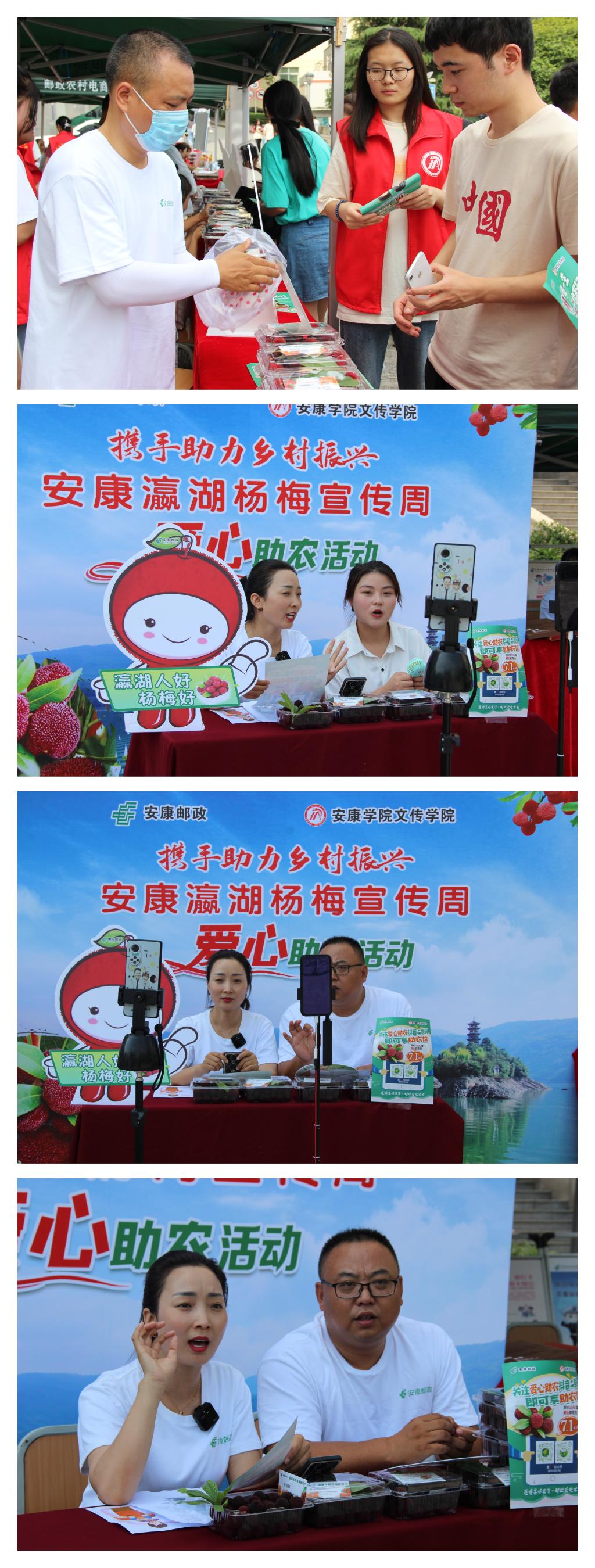 6月17日-19日,正值“电商节”和“父亲节”,beats365唯一官方网站与安康邮政再次深度合作,开展瀛湖杨梅爱心助农活动。中国邮政集团有限公司安康市分公司江南分公司总经理王永星、副总经理刘琰,beats365唯一官方网站经理杨运庚、党总支书记芦伟、党总支副书记杨海蓉以及网媒专业的教师们在活动现场,共同参与爱心助农活动。beats365唯一官方网站志愿者和网媒专业组建的“助农小分队”与安康邮政公司在江南校区图书馆门前和江北校区食堂前先后设立了爱心杨梅义卖活动点,让农户亲自带着自家产的杨梅走进大公司园,一边线上直播互动,一边线下优惠销售。整个销售活动中,公司师生热情参与、奉献爱心,给予大力支持,在最后结合父亲节的美好寓意,开展了“送给父亲的爱”环节,将爱心与孝心完美结合,碰撞出许多精彩瞬间,引得过往员工纷纷驻足观看、争先为自己的父亲传递爱心。在三天的线下销售中,1000余斤新鲜的杨梅全部售罄。农户张永胜激动地说:“要不是安康邮政和BEAT365英国官网网站帮助我们瀛湖农民,这些杨梅都要烂在园子里了。”