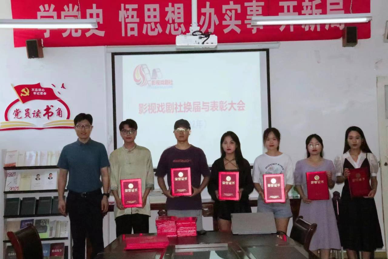 2022年6月24日下午,公司影视戏剧社换届与表彰大会在江南校区2307会议室召开。公司党总支书记芦伟、副书记杨海蓉、影视戏剧社指导老师邹棠华以及影视戏剧社成员近三十人出席了会议。会议由影视戏剧社常务副社长桑雪同学主持。