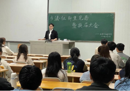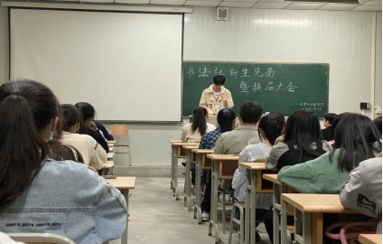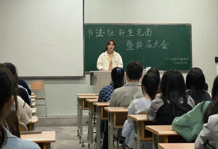 会上指导老师周海霞老师从专业课学习,考试、就业、生活、个人形象等角度,结合自己的经历生动地讲述学习书法的必要性,同时感谢前社长的辛苦付出,鼓励大家从零开始,坚持不懈,期待大家的进步。