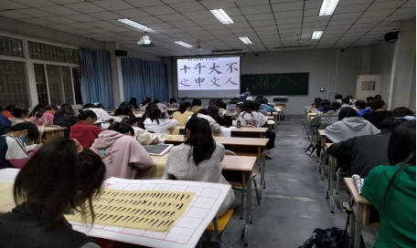 在近期的社团活动中,社长朱欣月通过对书法的基本介绍,书法作品鉴赏等环节加深了大家对书法的认识和了解。随后现场指导社员们练习,讲授书写窍门,点燃了大家对书法的热情。活动现场的每一个人都在认真学习书法,讨论声不断,大家乐在其中。