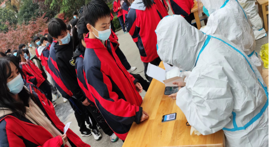18日早晨,迎来了第一次校内全员核酸检测。作为实习团队队长,我找到实习指导老师,主动请战,承担采样志愿者、协助医生进行核酸采样登记。和老师沟通这事,老师直接拒绝了我的请求,说核酸采样具有一定的危险性,公司领导会先上。我和指导老师争辩了起来,我说公司领导要统管大局,还要继续为抗疫操劳。我是实习队长,我要给其他的伙伴们带头。在我的一再坚持之下,老师答应了我的请求,但要做好全方位的保护。就这样,我从一个实习员工成为了采样志愿者,为抗击疫情穿上了从没有穿过的防护服,这是我长这么大从没经历的事,也是我终生难忘的经历了。