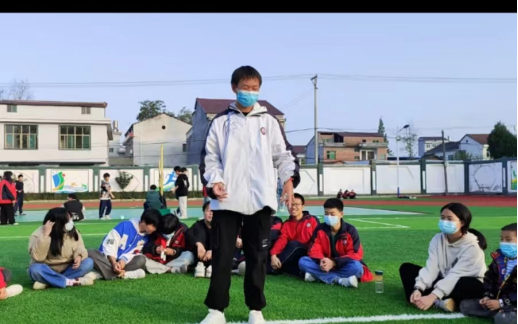 (图三:在公司操场上带领员工们进行户外活动)