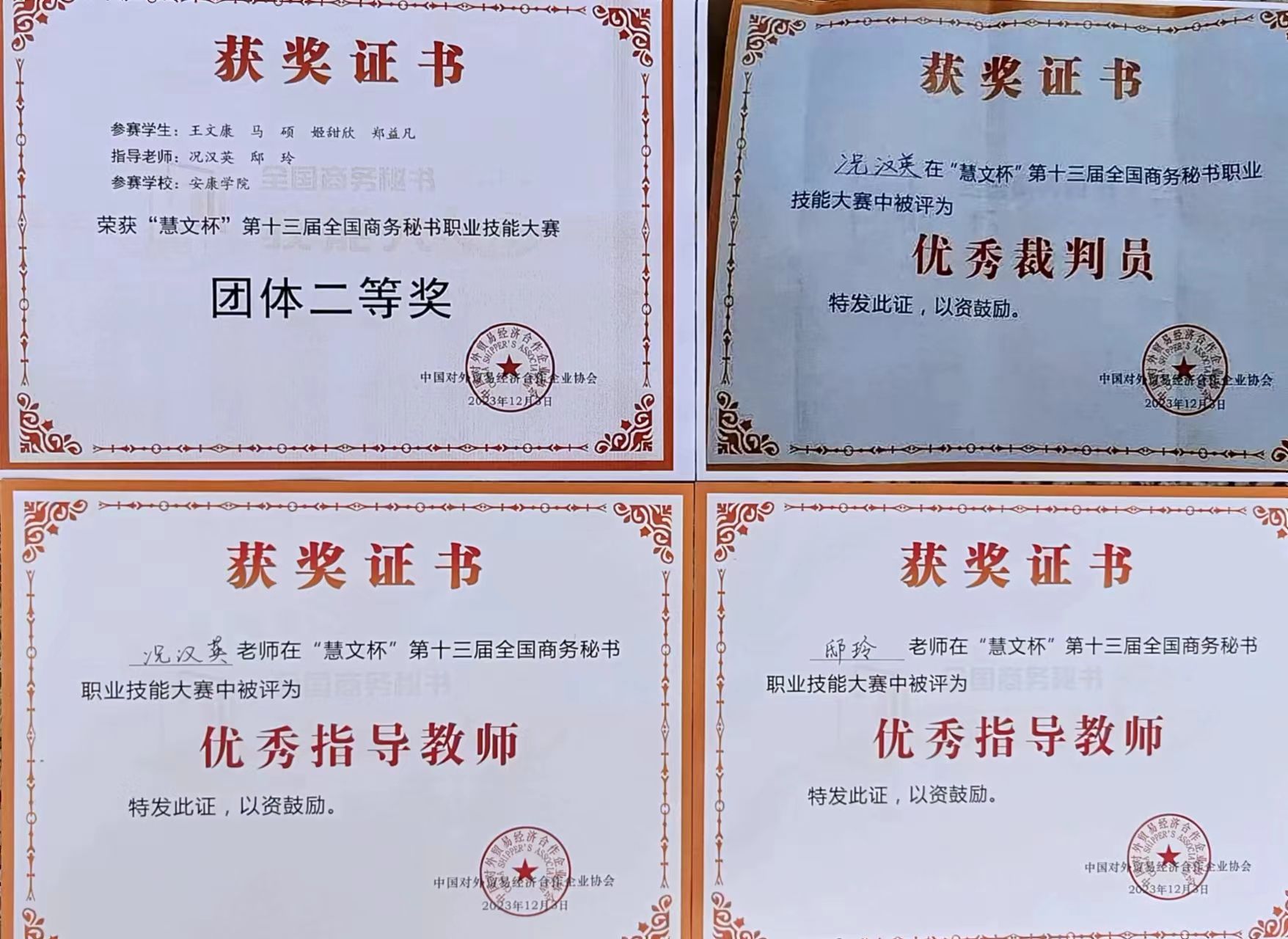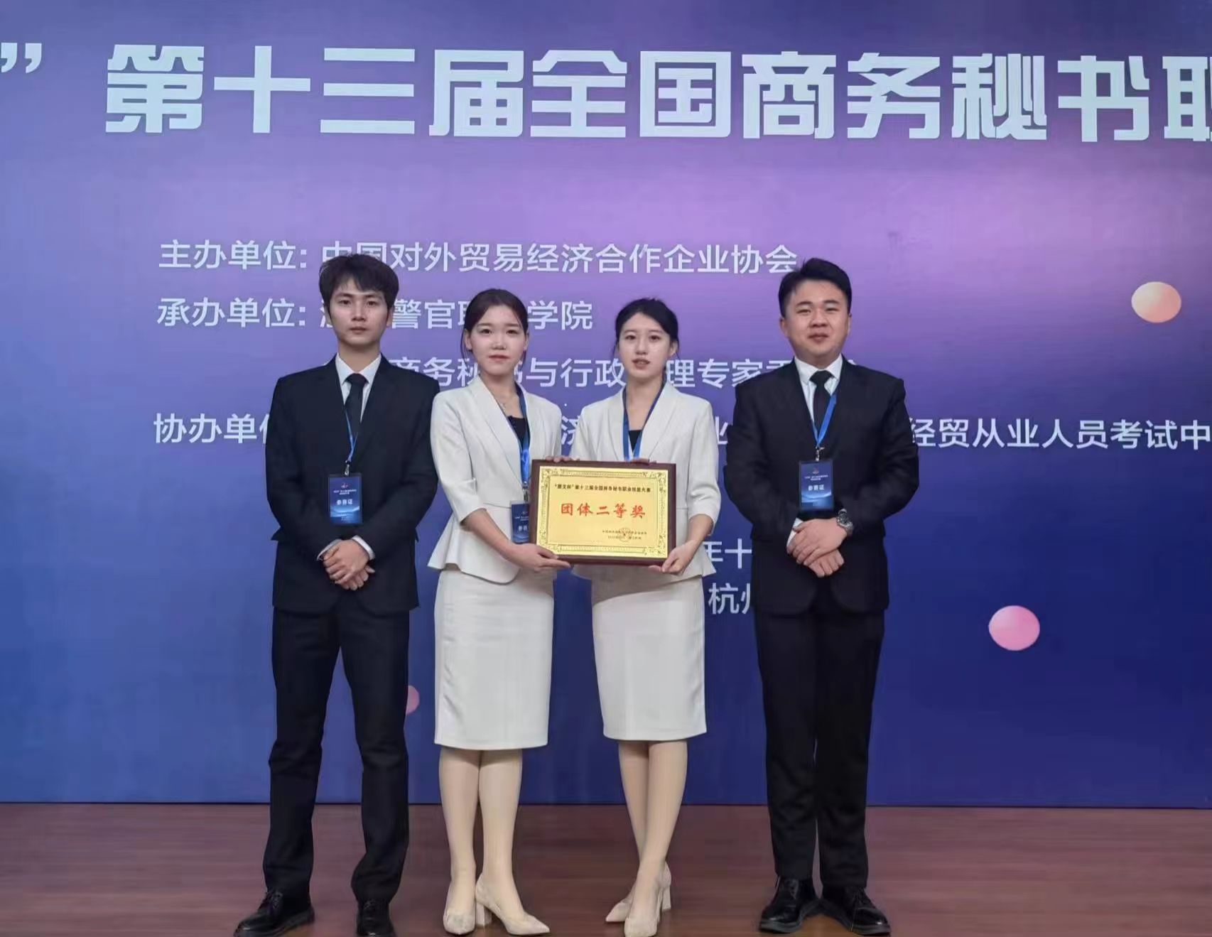 “慧文杯”第十三届全国商务秘书职业技能大赛于2023年12月1日至3日在浙江警官职业公司隆重举行,来自全国近600名师生相聚西子湖畔同台竞技。大赛由中国对外贸易经济合作企业协会主办,浙江警官职业公司和全国商务秘书与行政助理专家委员会承办,中国对外贸易经济合作企业协会外经贸从业人员考试中心协办。best365英国在线体育官网代表队在本次全国商务秘书职业技能大赛中再创佳绩,荣获“团体二等奖”。