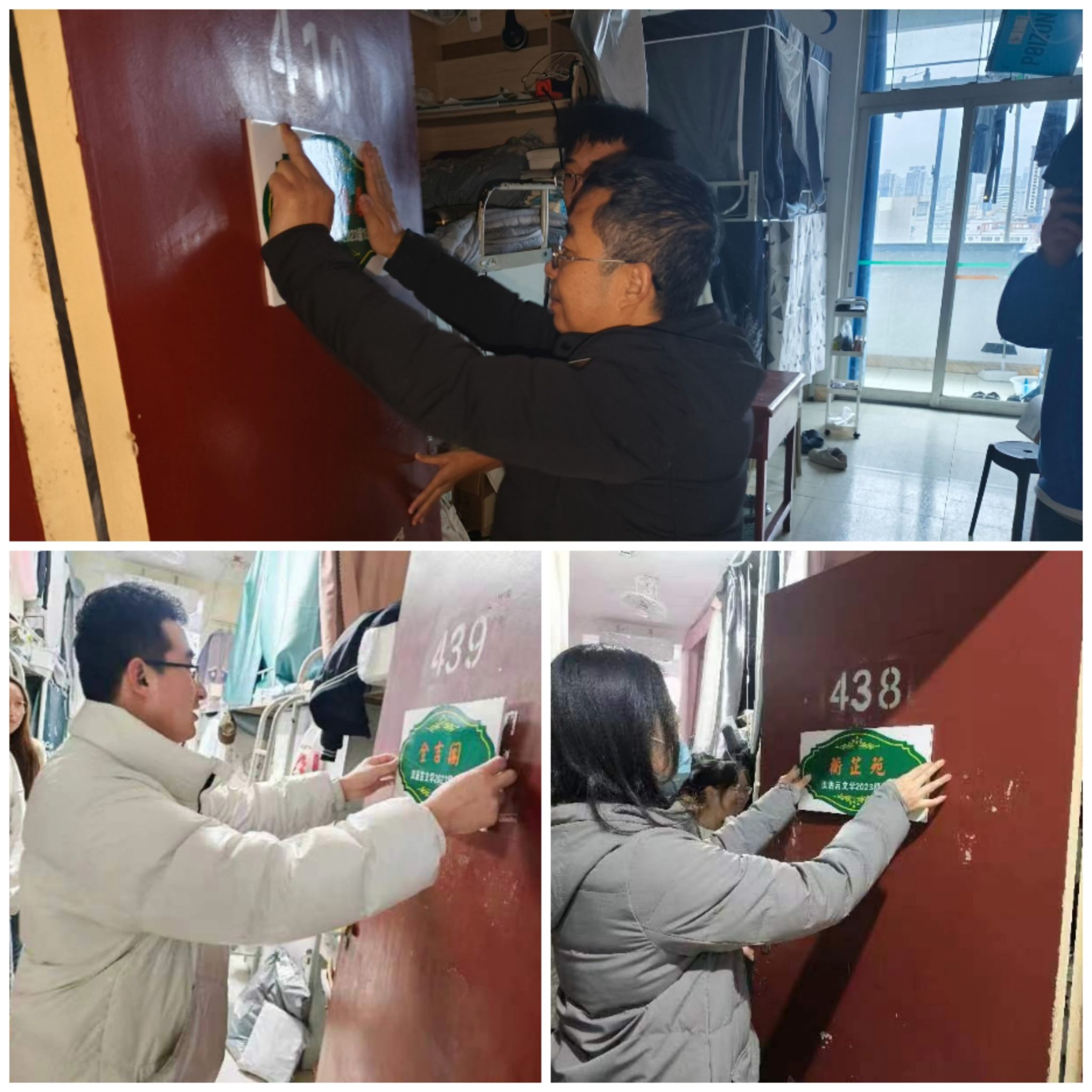 各位老师在深入宿舍和挂牌的过程中,仔细查看宿舍安全隐患、询问员工宿舍关系和作息等情况,强调宿舍要和睦相处,保持宿舍清洁卫生,并排查了宿舍安全隐患。