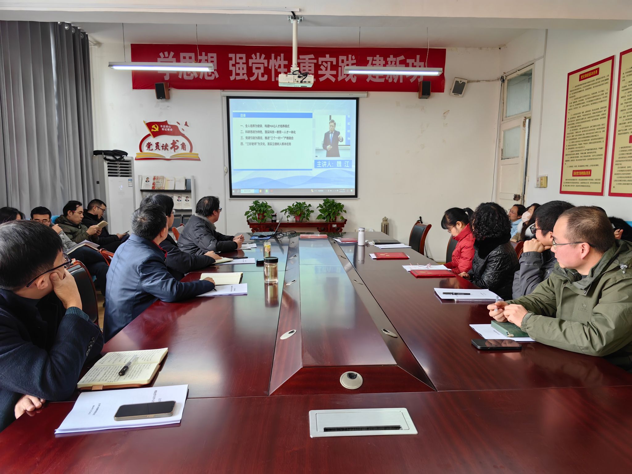最后,组织全体教师集体学习了浙江财经大学党委副书记、副董事长魏江教授主讲的“科研思政 党建引融,培养心怀‘国之大者’”的两型人才”专题报告。杨运庚强调,全体教师要进一步加强理论学习,大力弘扬教育家精神,坚持自我教育,坚守课堂主阵地,厚植教育情怀,牢记为党育人、为国育才的初心和使命,树立“躬耕教坛、强国有我”的志向和抱负,以饱满的精神状态投入到新学期的各项工作中。