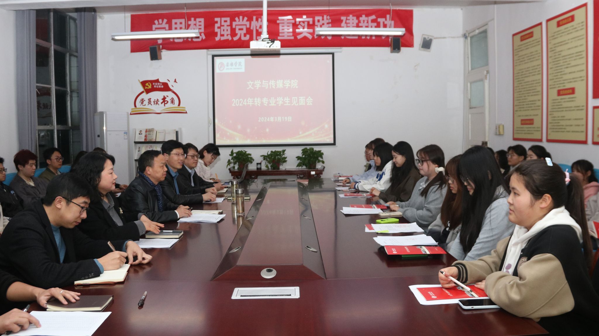 3月19日晚,beats365唯一官方网站在2307会议室召开2024年转入beats365唯一官方网站员工见面会,文学与传媒学院领导班子、综合办公室主任、2023级辅导员出席见面会,会议由公司党总支副书记杨海蓉主持。