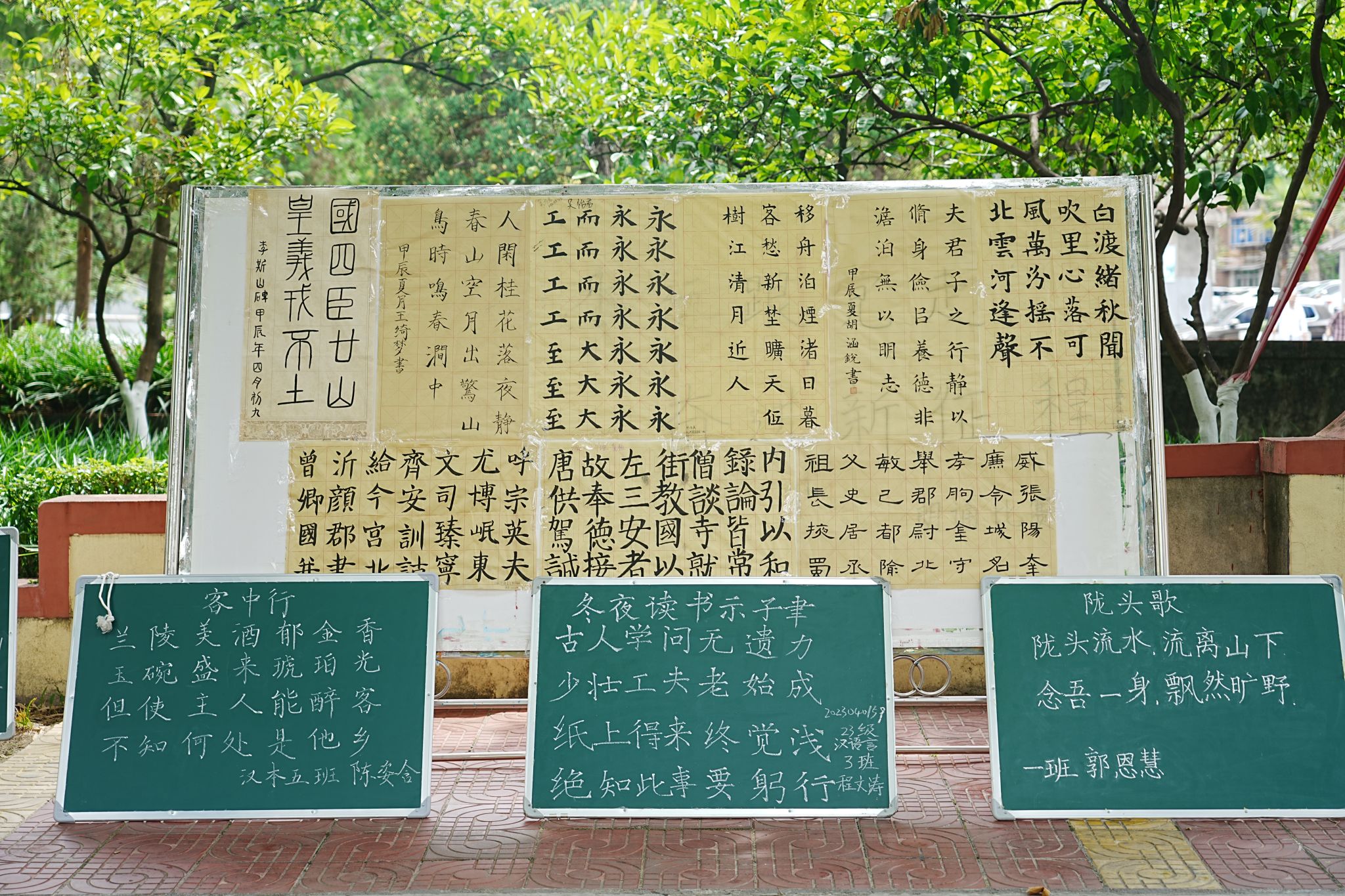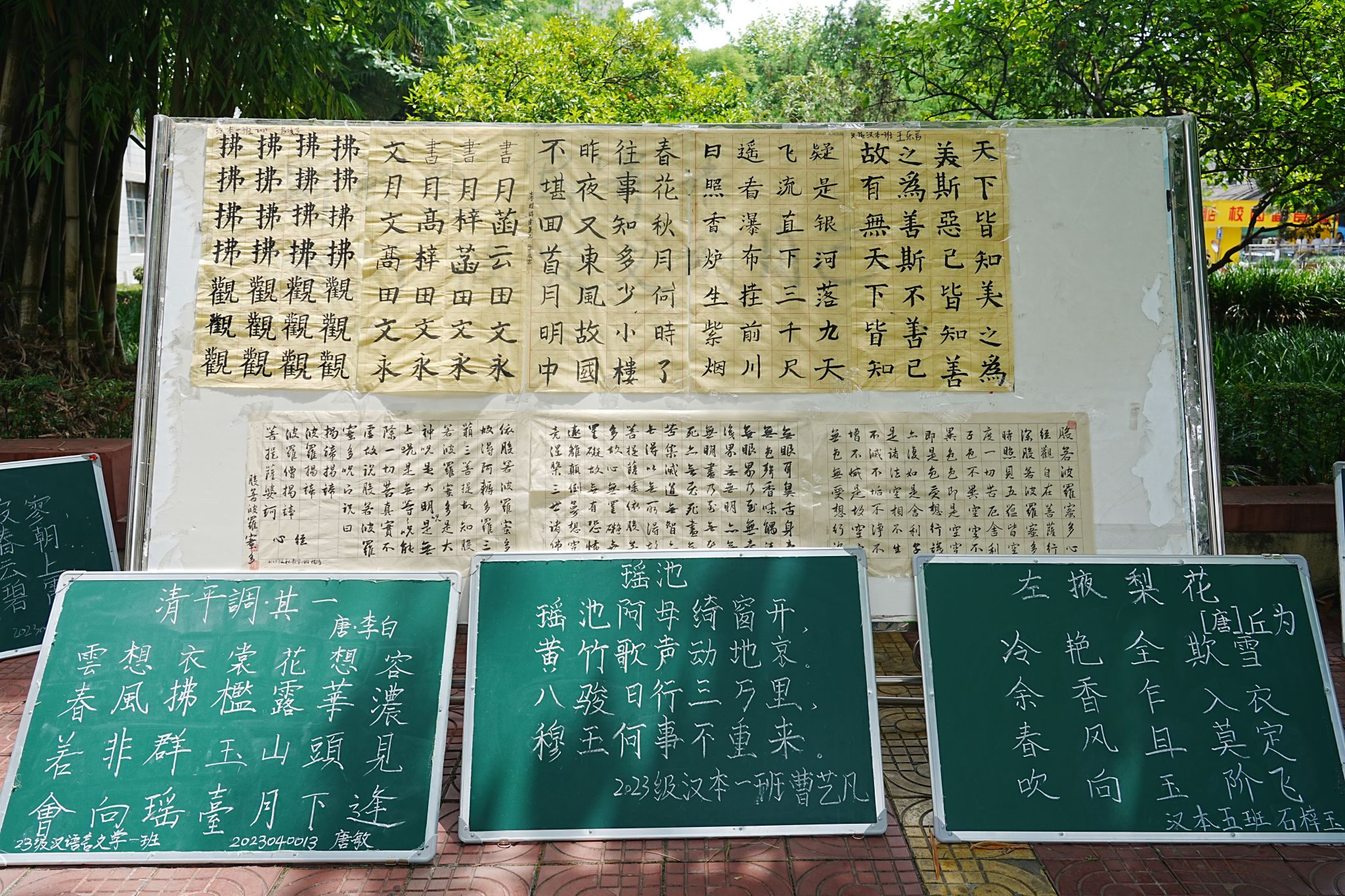 本次大赛收集参赛作品分为硬笔、毛笔和粉笔三个类型比赛展示期间,员工提交的所有作品分别摆放在校园林荫道的两旁和公司楼道内,一幅幅作品有的端庄严谨,有的清新秀丽,的圆转流畅,展现出员工扎实的书写基本功;作品中有经典流传的圣言之道,有脍炙人口的古有气势磅礴的革命诗句,也有民间传统优秀家训,内容跨越千年题材丰富多样5月28日上午,经过评委们的认真评选,最终按类别评选出一等奖6名,二等奖9名,三等奖12名优秀奖8名