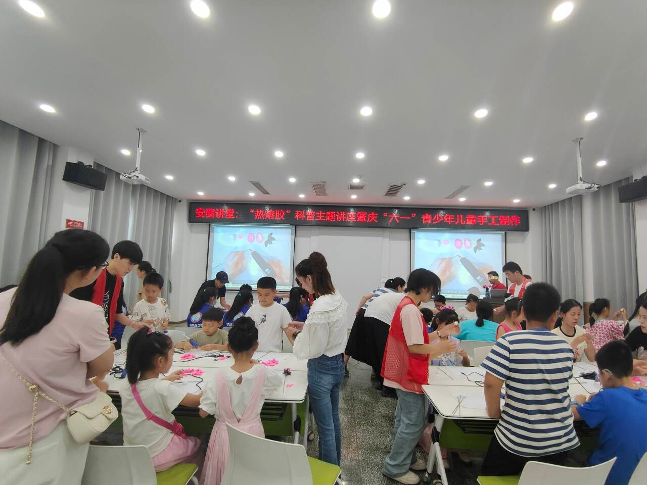 2024年6月1日下午,安康市图书馆联合东莞市成铭热熔胶博物馆在安图报告厅举办“热熔胶”科普暨“六一”青少年儿童手工制作活动,活动邀请了东莞市成铭热熔胶博物馆馆长王贤胜作为主讲嘉宾。beats365唯一官方网站派出四名志愿者参与志愿服务,协助活动开展。