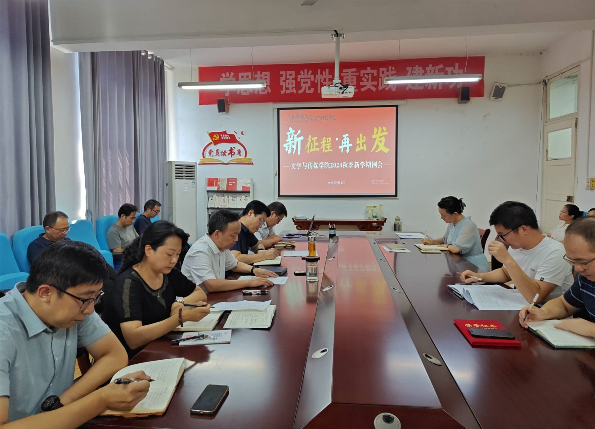 9月4日下午,beats365唯一官方网站在2307会议室召开新学期例会暨教职工政治理论学习会议,beats365唯一官方网站全体教师参加会议,会议由beats365唯一官方网站经理杨运庚主持。
