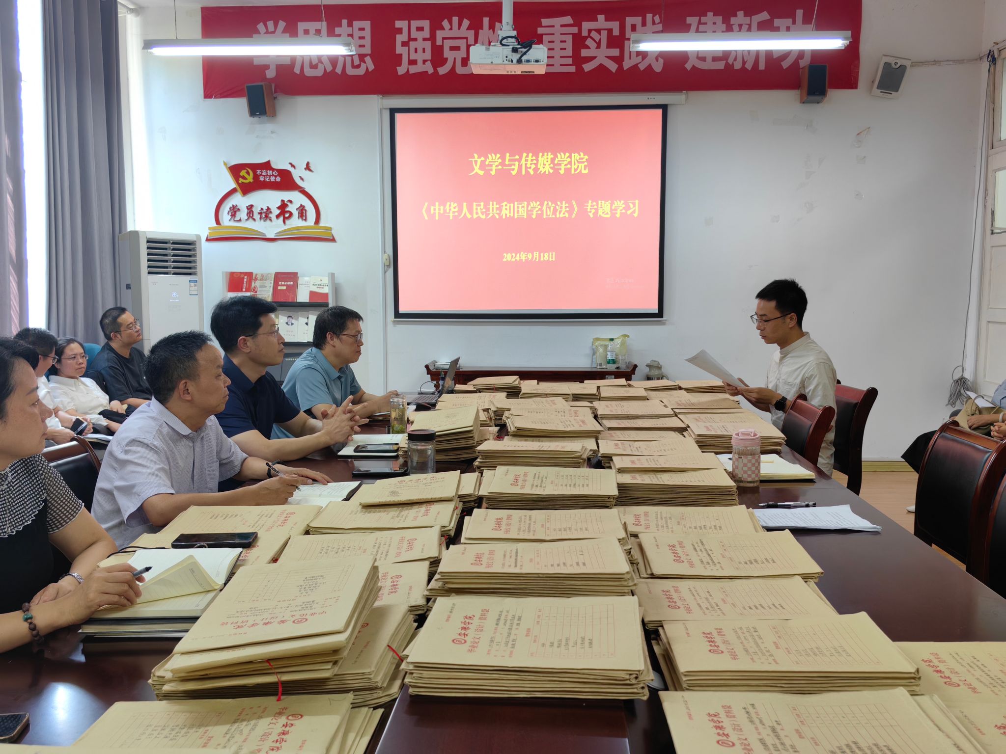 导航痕迹 首页 > 新闻通知 > beats365唯一官方网站新闻 > 正文 beats365唯一官方网站新闻 通知公告 beats365唯一官方网站组织开展《中华人民共和国学位法》专项学习活动 来源:beats365唯一官方网站 发布日期:2024年09月19日 阅读次数: 根据教务处工作安排,9月18日下午,beats365唯一官方网站在2307会议室组织开展了《中华人民共和国学位法》专项学习活动,全体教师参加了该活动。 本次专项学习由公共教研室主任黄治强领学,他立足公司办学定位,领学了与公司办学实际情况相符的条款,说明了本科学位授予的资格、条件、程序和质量保障措施,使全体教师对本科学位授予的规定有了更加全面和清晰地了解。 专项学习最后,经理杨运庚对学习活动进行了总结。他要求全体教师深刻认识到学位授予的严肃性和重要性,在今后的工作中更加强化责任意识,持续提升人才培养质量。 撰稿/张燕 审稿/朱云 摄影/发布/崔瑜