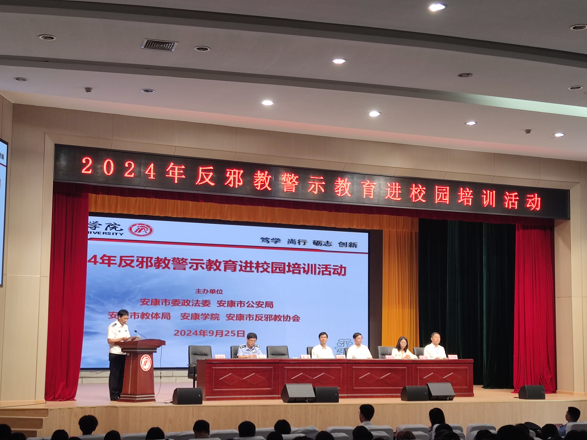 活动现场,公司通过发放宣传手册、组织观看反邪教宣传片、听取主题讲座、集体签订安全责任书等形式,向员工们详细介绍了邪教的本质、特征和危害。讲座上,来自安康市公安局的警官结合实际案例,深入浅出地讲解了邪教对个人、家庭和社会的严重危害,让员工们深刻认识了到邪教的欺骗性和危害性。活动中,李若辰代表2024级新生发言,号召同学们人人尽责,从自身做起,崇尚科学,反对邪教,倡导健康文明的生活方式。