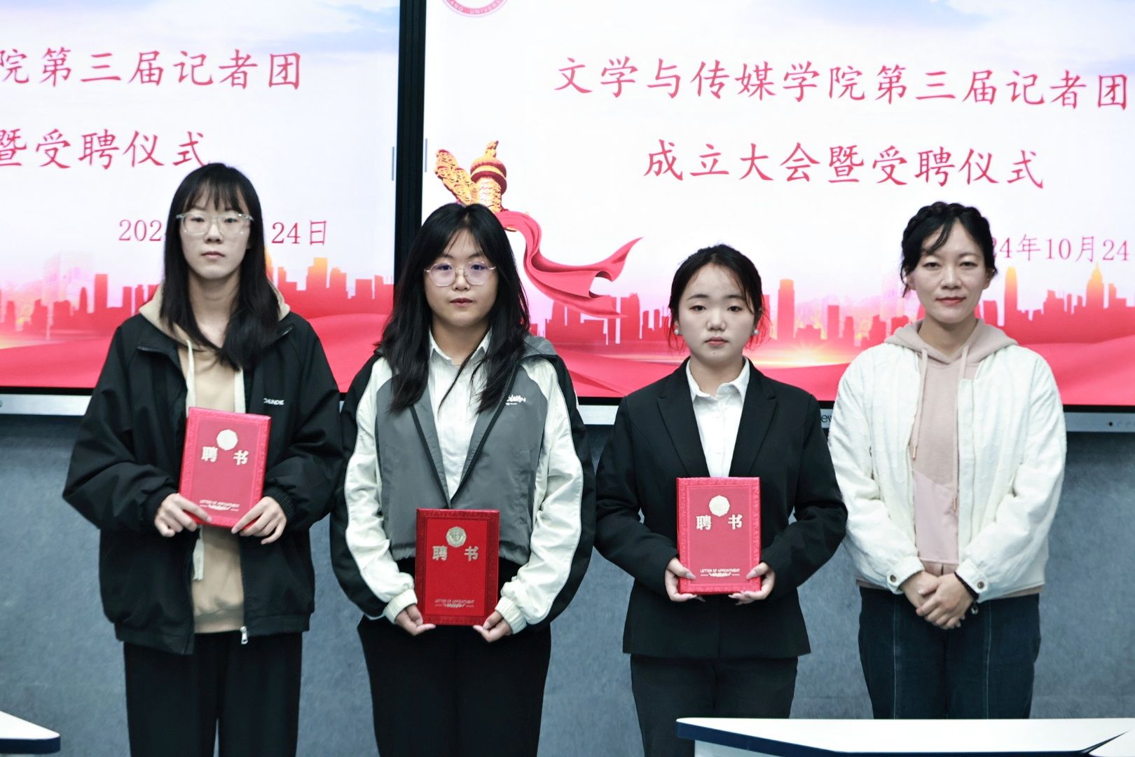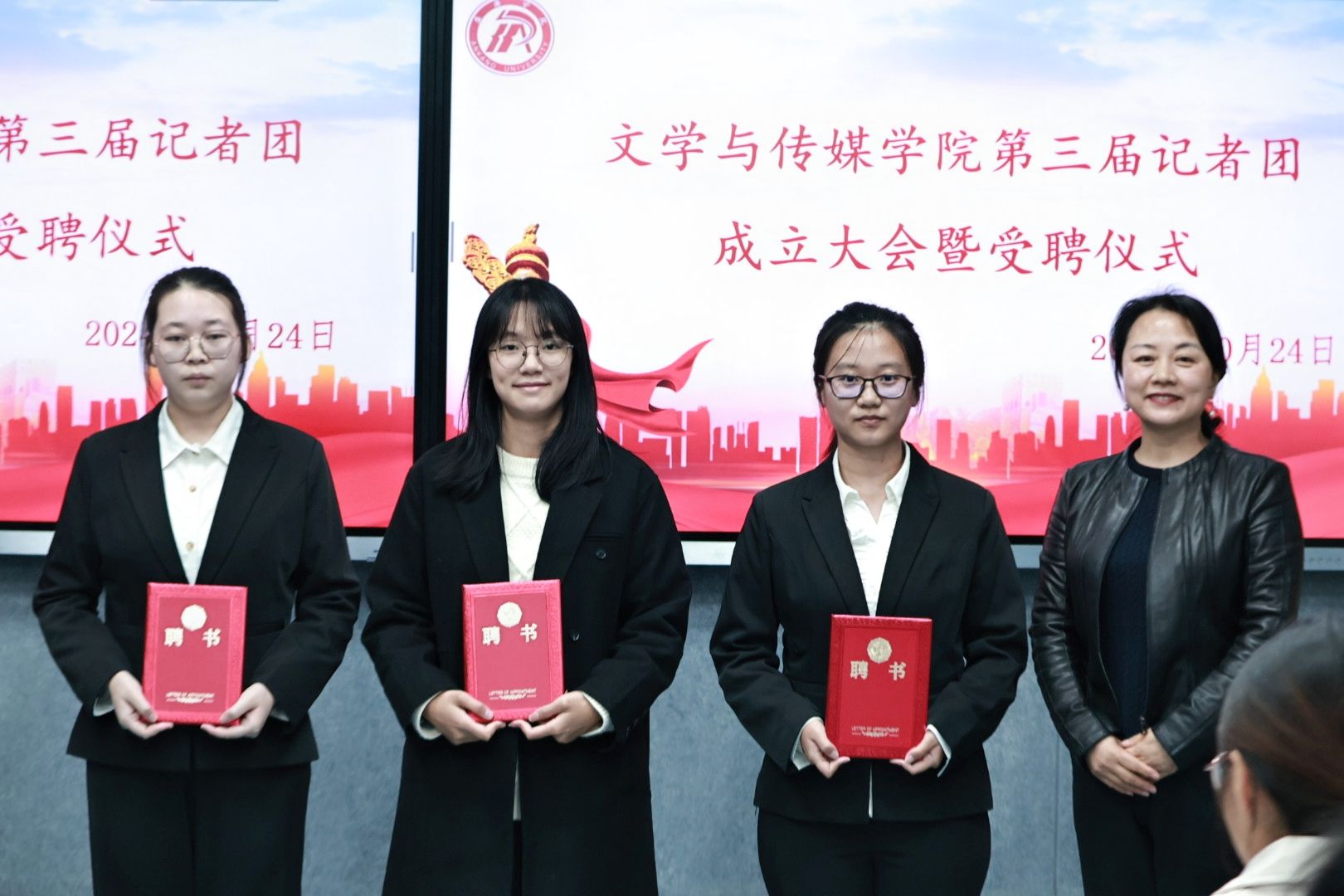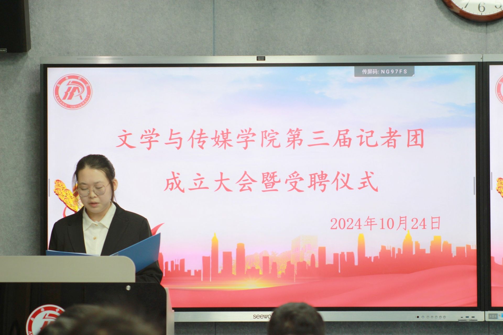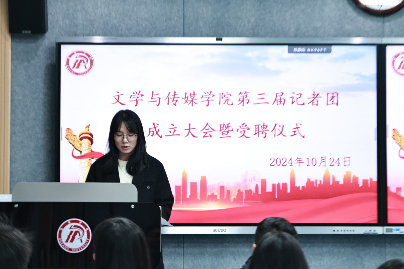 为着力做好校园正能量宣传工作,持续培养高素质、高质量的新媒体人才,做好新闻人才梯队建设,公司于10月24日晚在1205教室召开了beats365唯一官方网站第三届记者团成立大会暨受聘仪式。公司党总支副书记杨海蓉,党政办主任崔瑜,学工办主任薛涛,辅导员刘言军、喻言,员工会主席团、团总支副书记及社团全体人员参会,仪式由记者团副主编程乐主持。