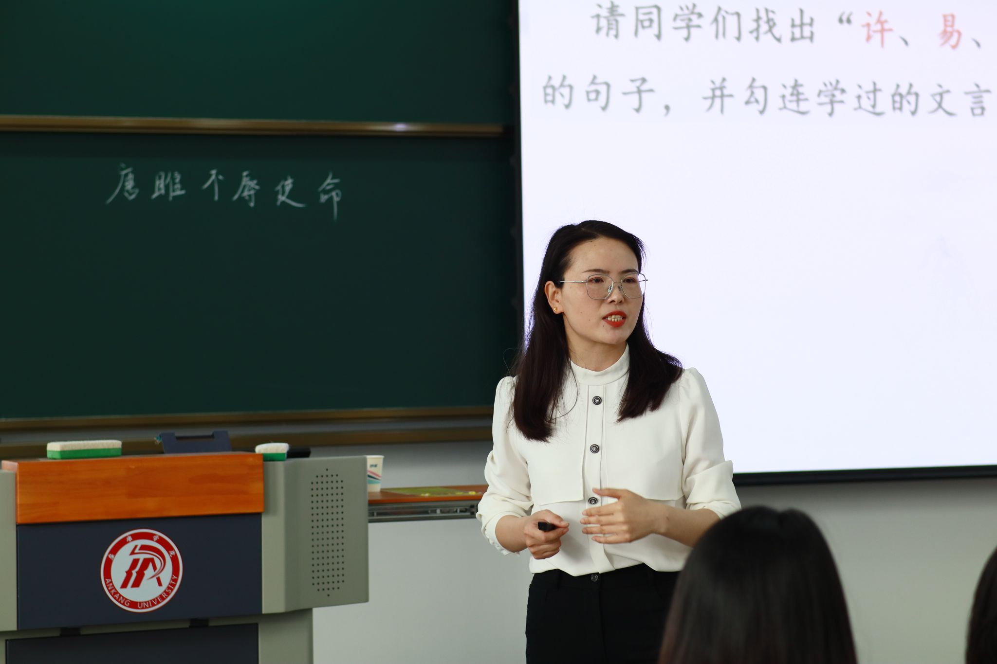 杨娟老师围绕实用文教学设计展开授课。杨老师以《最后一次讲演》为例进行了课堂教学展示,主要围绕实用文教学设计中的难点问题与同学们展开了深入地探究。