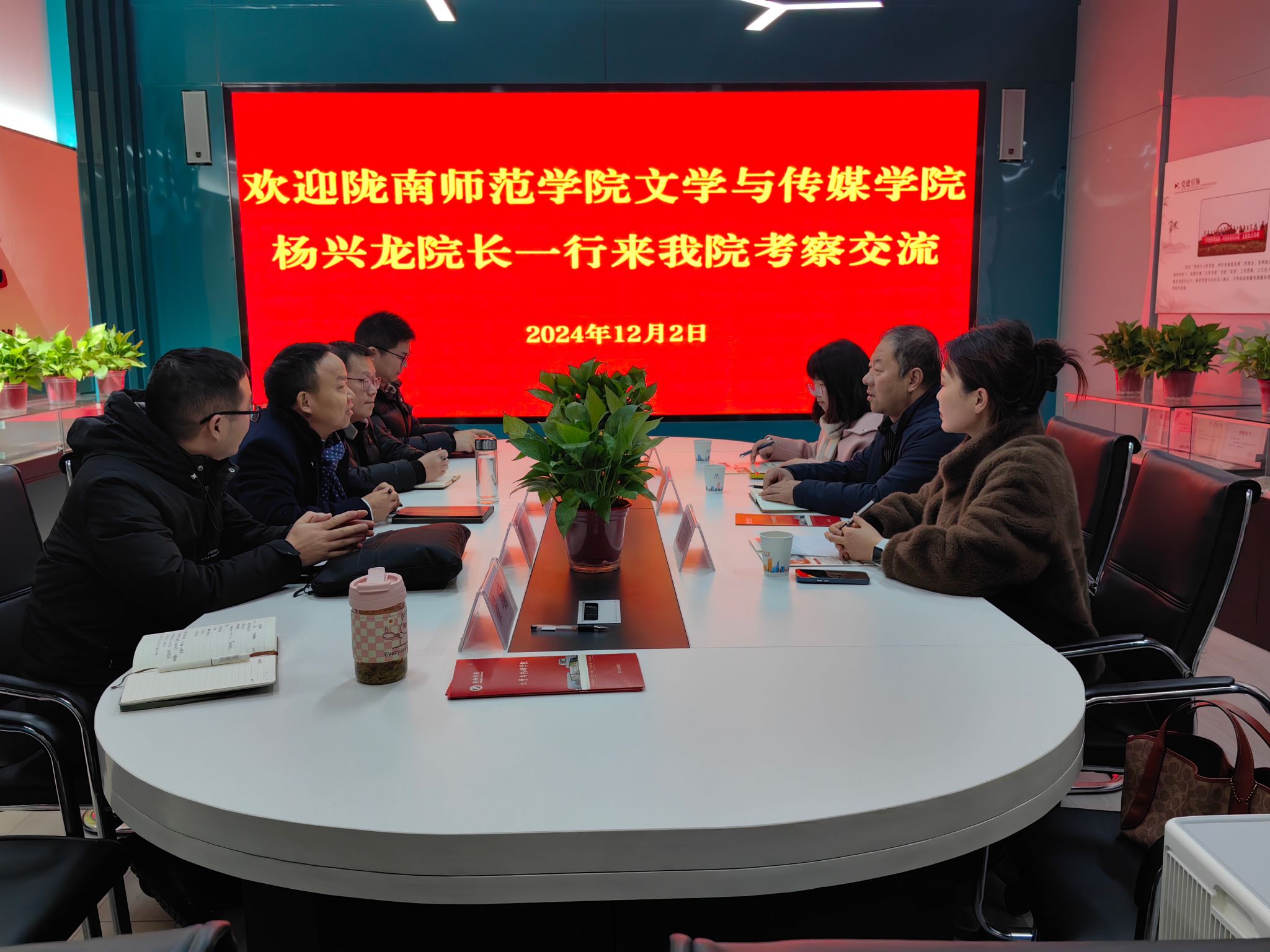 12月2日上午,陇南师范公司beats365唯一官方网站杨兴龙经理一行3人来公司考察交流,beats365唯一官方网站经理杨运庚、副经理朱云、秘书学专业负责人胡少山、秘书与新媒体系主任张建涛、党政办主任崔瑜参加交流座谈。