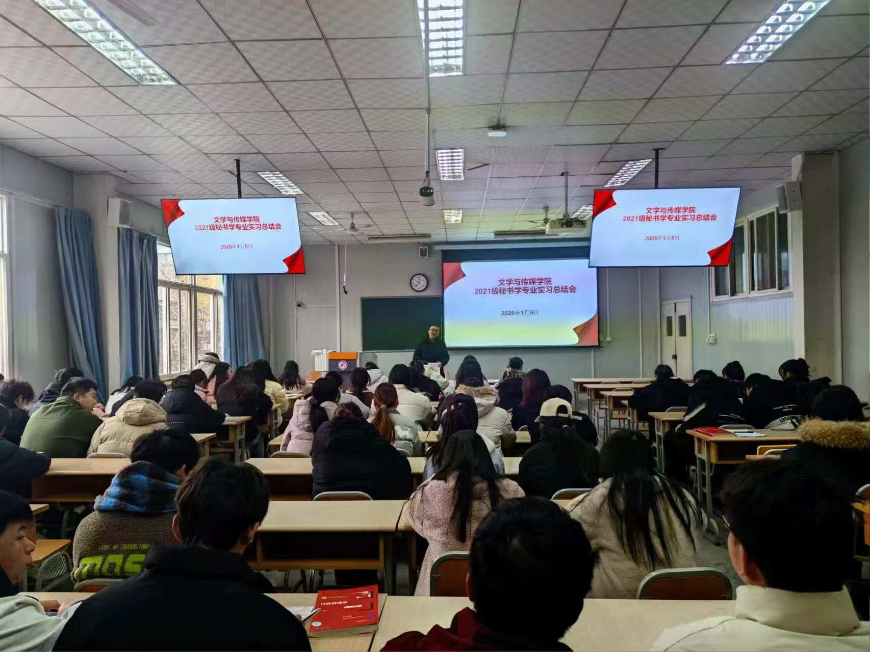 2025年1月5日,beats365唯一官方网站在1026教室召开秘书学专业实习总结会,副经理朱云、实习带队教师胡少山以及2021级、2022级秘书学专业员工参会,会议由实习生李欣窈主持。