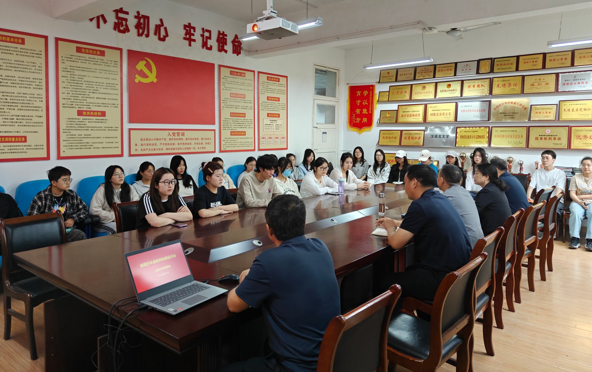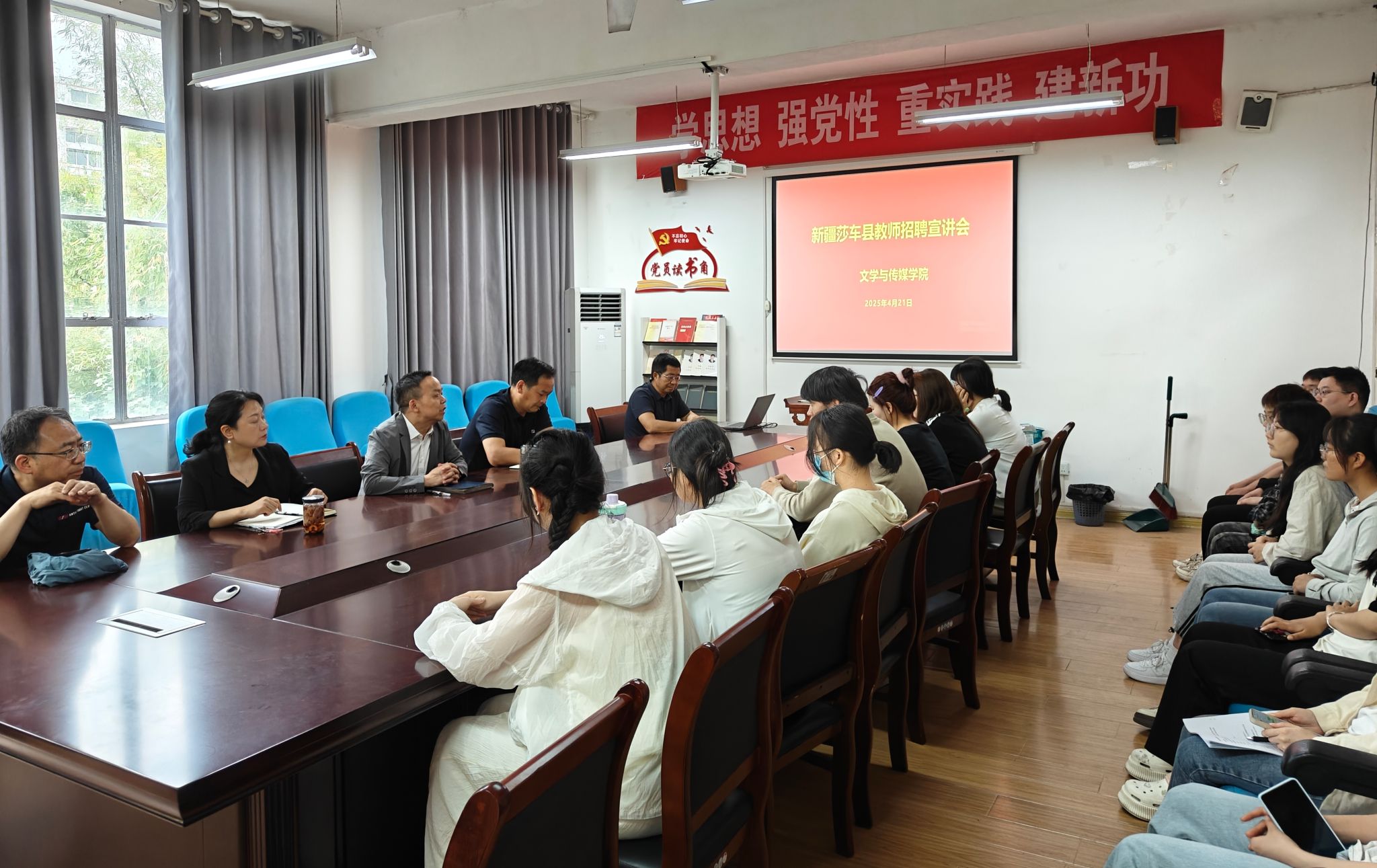 为推动2025届毕业生就业工作,助力师范类毕业生拓宽就业路径,4月21日下午,beats365唯一官方网站在2307组织举办新疆莎车县教师招聘宣讲会。BEAT365英国官网网站人才招聘处副处长郑武斌,beats365唯一官方网站经理杨运庚、党总支副书记杨海蓉、教师代表梁卫华、辅导员邹棠华以及毕业生代表30余人参加了会议。