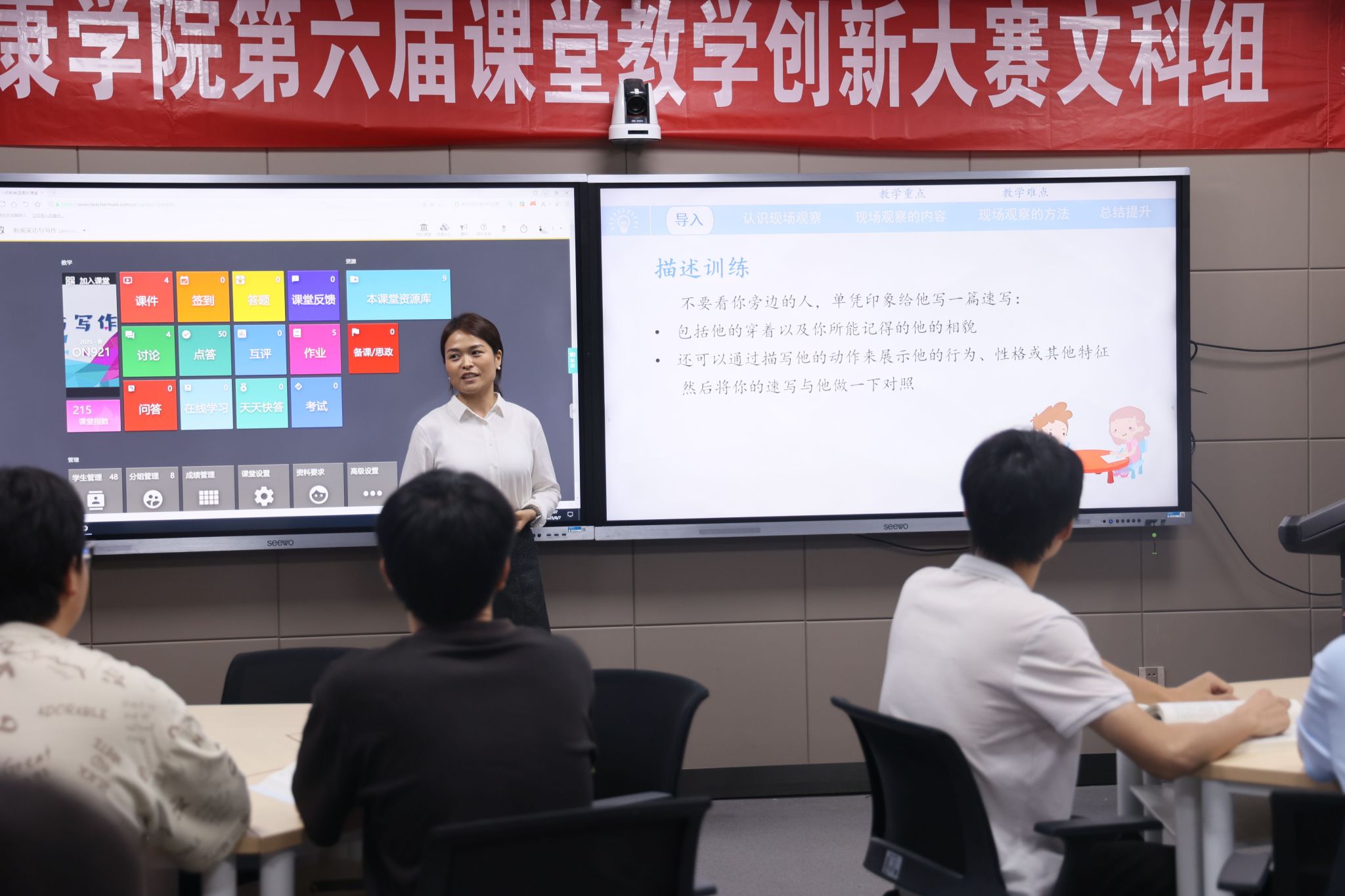 据悉,本届大赛历时两个月,经系(教研室)初赛、院级复赛的层层选拔,最终55位选手脱颖而出成功进入校级决赛。决赛分为文科组、理工科组、术科组三个组别,设置“随堂听课+现场教学展示+教学创新成果汇报”三个考核环节。参赛教师们教态自然、精神饱满,教学模式和教学组织过程推陈出新,教学方法和手段丰富多样、科学有效,现代教育技术与传统课堂深度融合,教学效果追求员工学习成效的达成,充分展示了公司持续推进课程建设和“课堂革命”的成果,践行了“以学为中心”的课堂教学创新理念。
