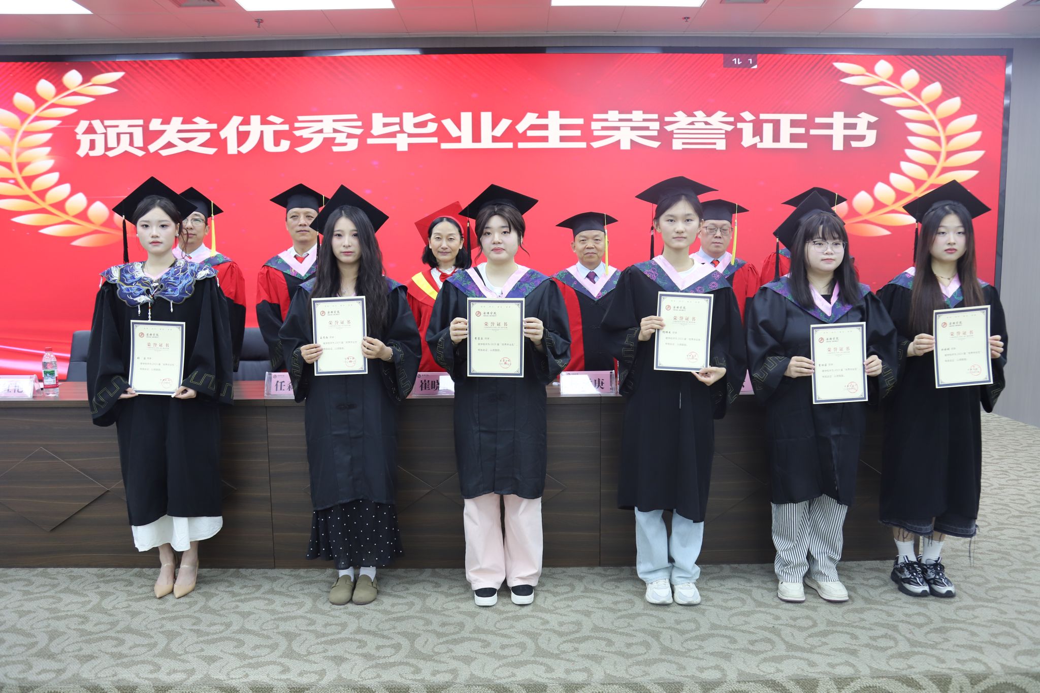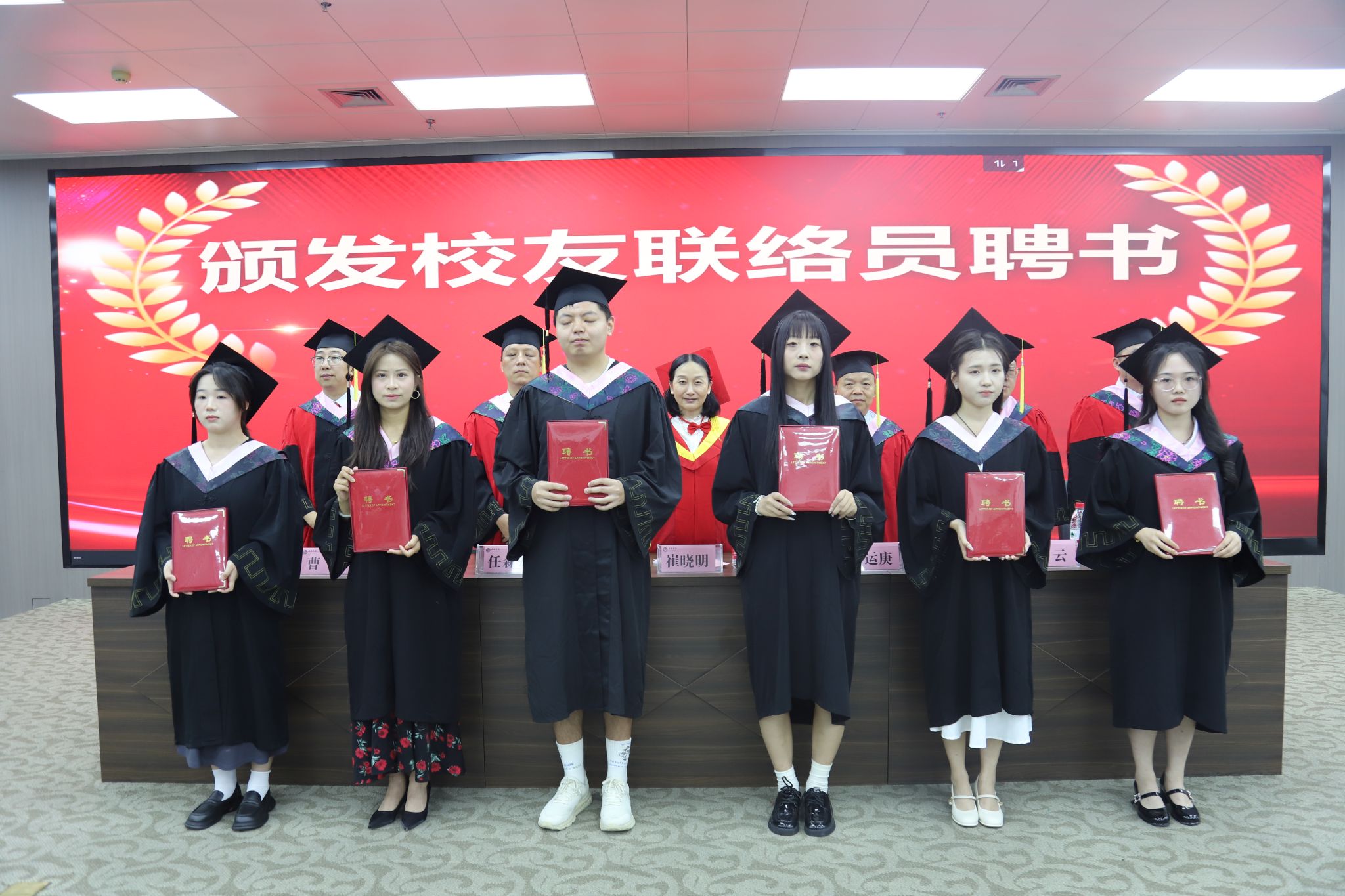 导师们为校级优秀毕业生颁发荣誉证书,为毕业生代表颁发了毕业证书,同时颁发了本届毕业生的员工联络员聘书。