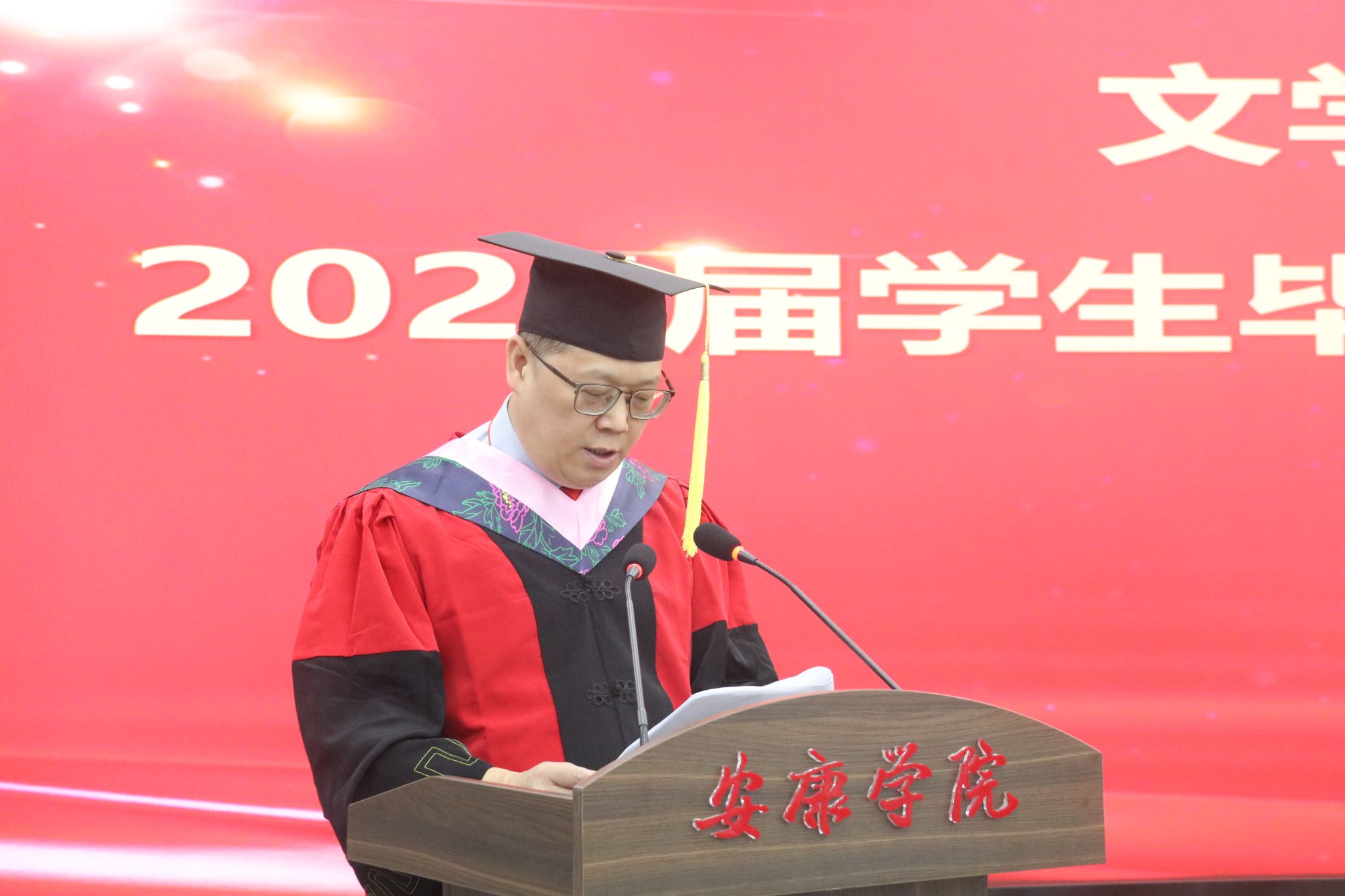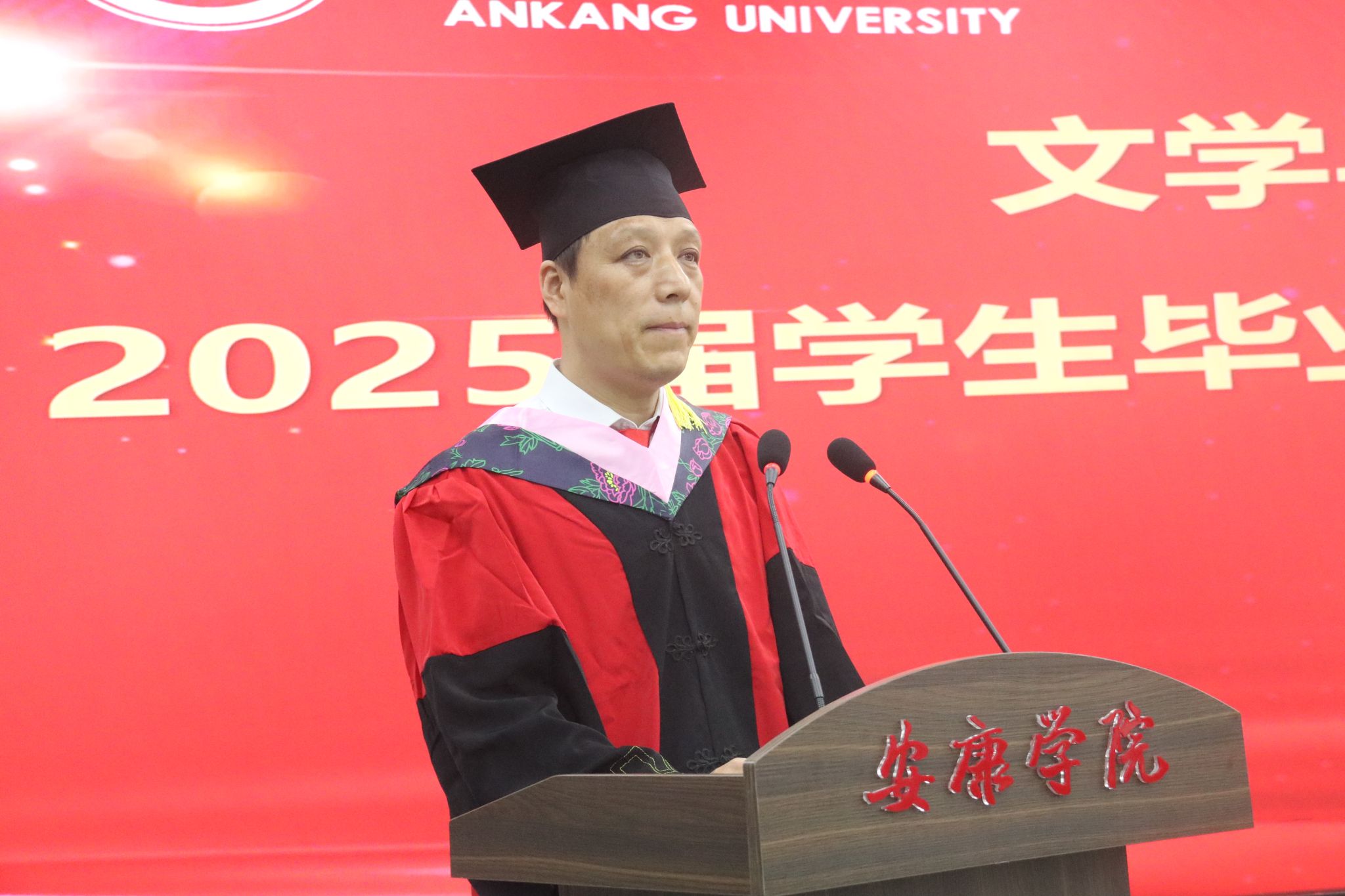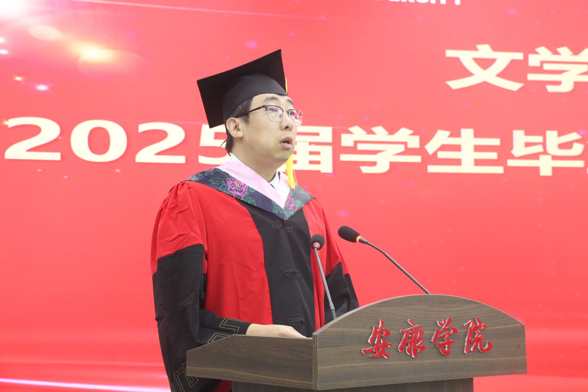 在庄严肃穆的国歌声中,毕业典礼正式拉开了帷幕。公司党总支书记任森龙宣读了《关于授予2025届本科毕业生学士学位的决定》,并对顺利获得学位的同学表示热烈的祝贺。