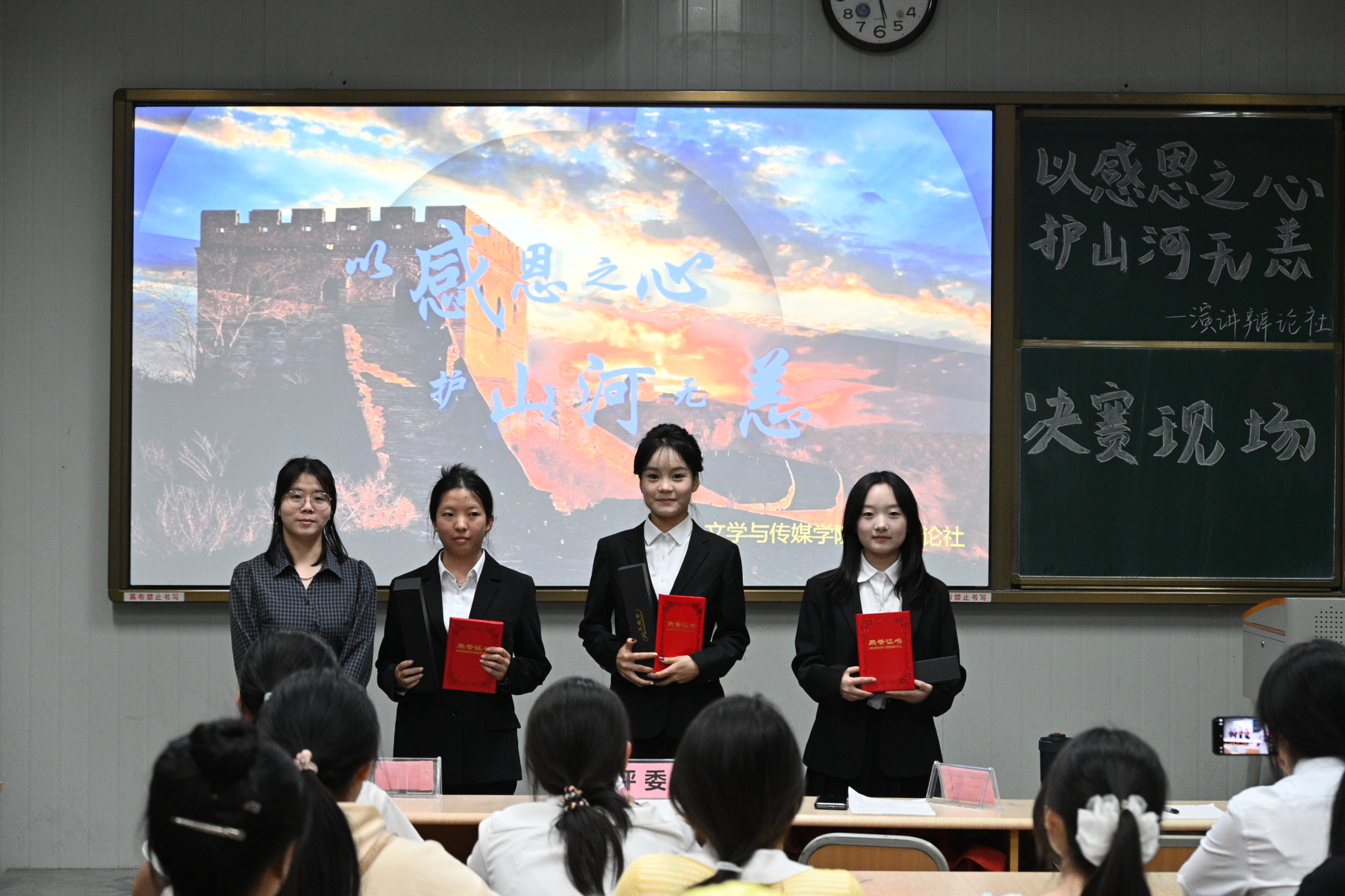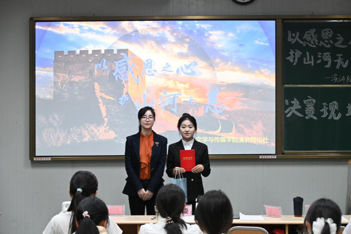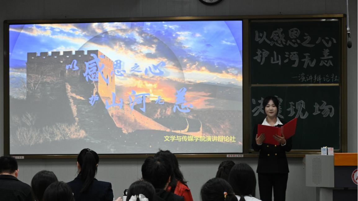 为了充分展现公司老员工的文明素养,引导员工体悟感恩,增强社会责任感,以青春力量守护家国安宁,10月16日下午四时,演讲辩论社在江南校区10号楼1023教室举行“以感恩之心,护山河无恙”主题演讲比赛。公司党总支副书记侯红艳、2024级辅导员刘言军、2025级辅导员喻言、演讲辩论社指导老师余珊担任评委。演讲辩论社袁萌同学主持比赛。