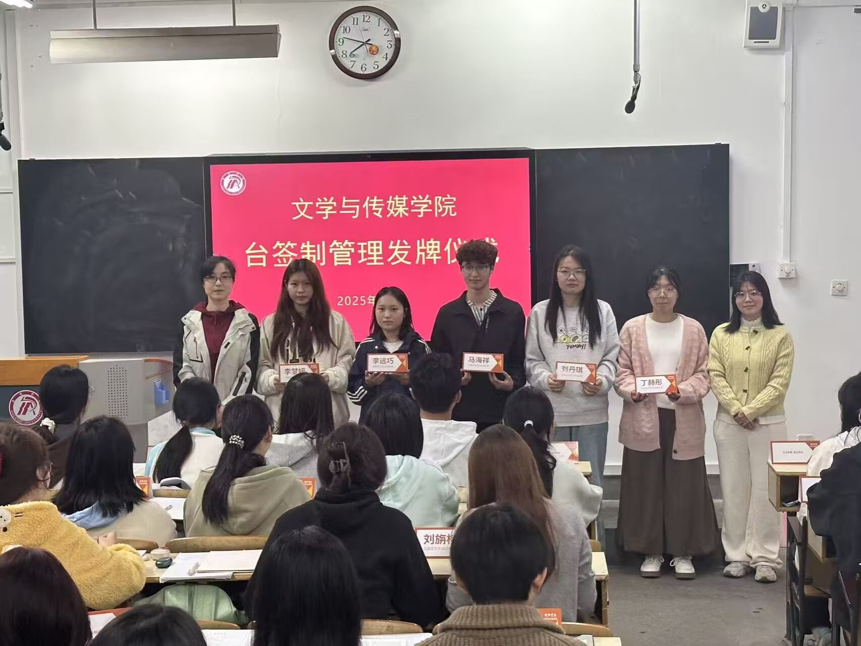 台签制将覆盖全院2025级所有班级,在固定教室或专业课堂上统一摆放使用。公司后续将结合台签制管理,系统性开展学风建设标兵评选、三笔字优秀作品展出等系列活动,不断延伸和巩固其管理成效,确保台签制发挥实效,成为学风建设的有力抓手。