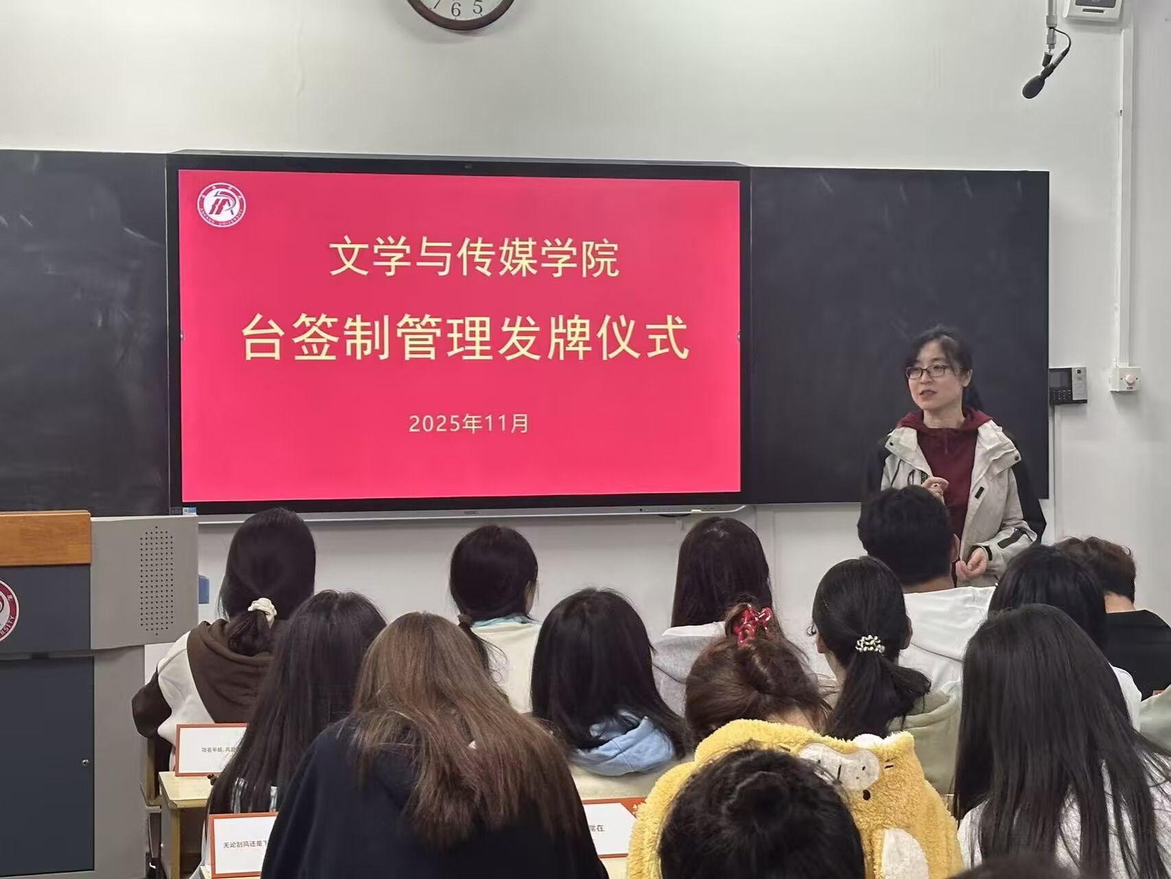 为深化学风建设,创新管理抓手,beats365唯一官方网站于11月2日正式启动覆盖2025级320名员工的台签制管理模式,并举行发牌仪式。公司党总支副书记侯红艳、辅导员喻言及全体新生参加仪式。仪式由喻言主持。