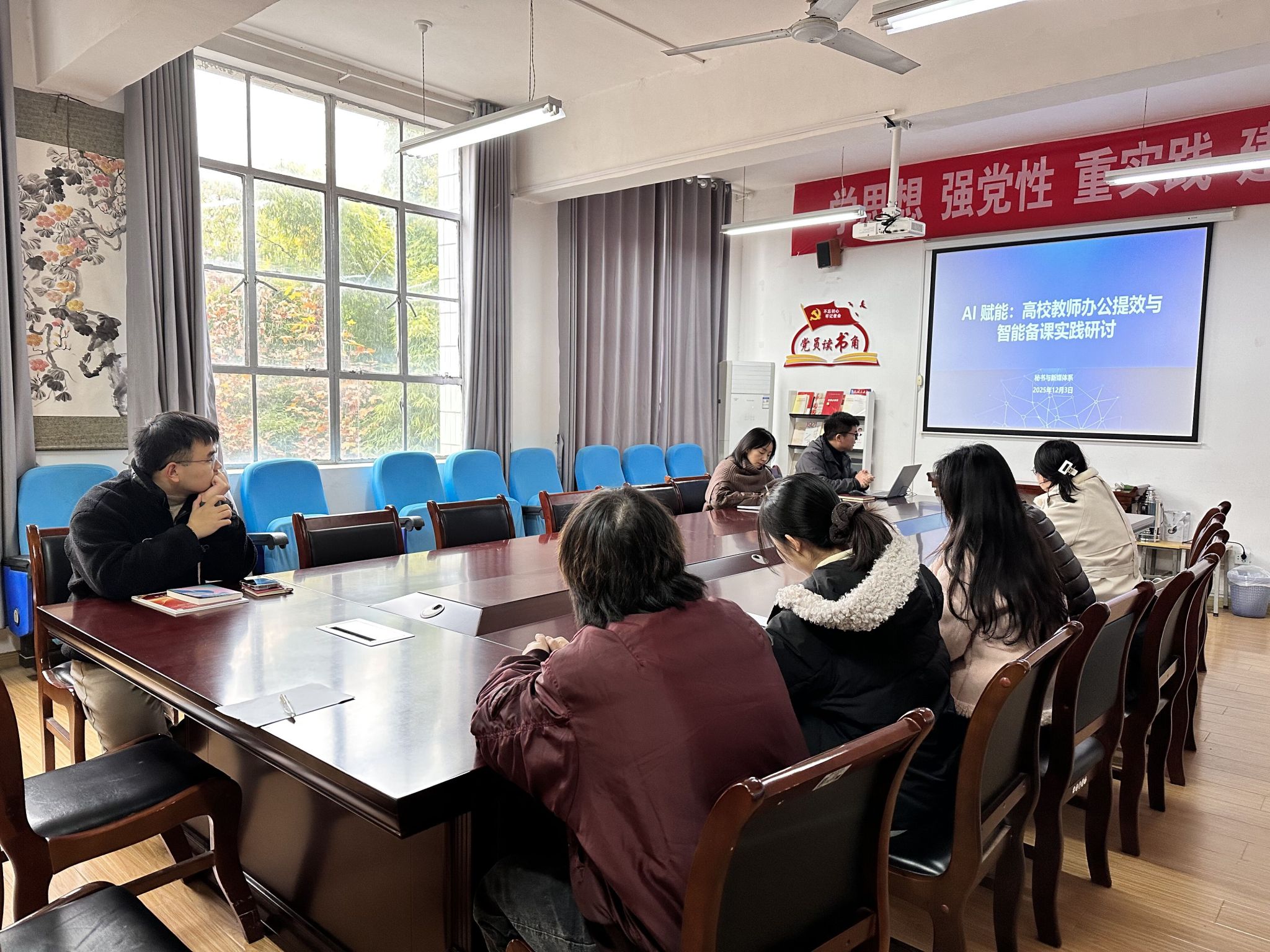 为积极响应公司教育数字化转型号召,推动人工智能技术与公司产品的深度融合,12月3日下午,秘书与新媒体系在2307召开了AI赋能教学新路径主题教研活动。本次活动由系主任邸玲主持,秘书与新媒体系全体教师参会,活动围绕“AI赋能教师办公及备课实践”展开了深入交流与探讨。