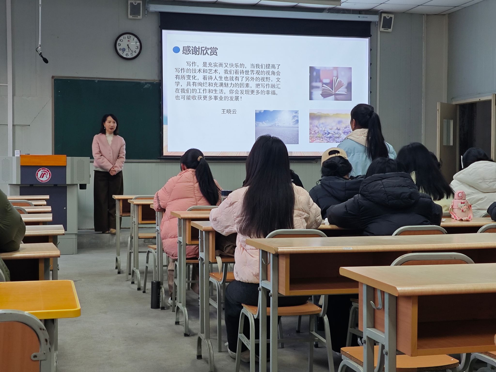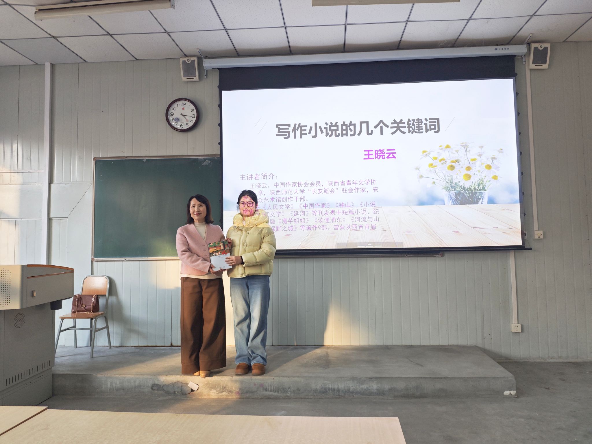 课堂伊始,王晓云老师将自己的代表作品《绿野之城》赠予同学们,表达了对学子们的殷切期望,鼓励大家在文学道路上深耕细作,勇于创作。