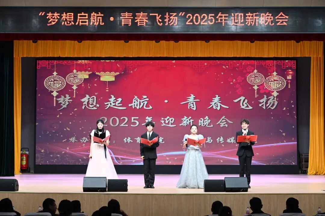 12月14日晚,beats365唯一官方网站与体育公司联合举办的“梦想起航·青春飞扬”迎新晚会在江南校区大礼堂隆重举行。公司组织部、学工部、团委等部门负责人应邀观看晚会,与beats365唯一官方网站、体育公司师生共赴这场青春盛宴。