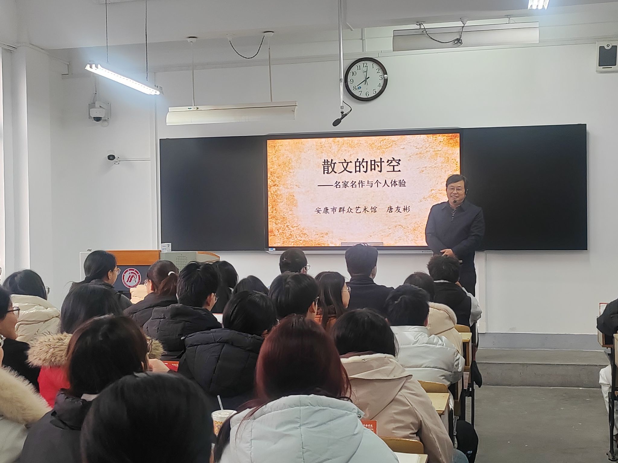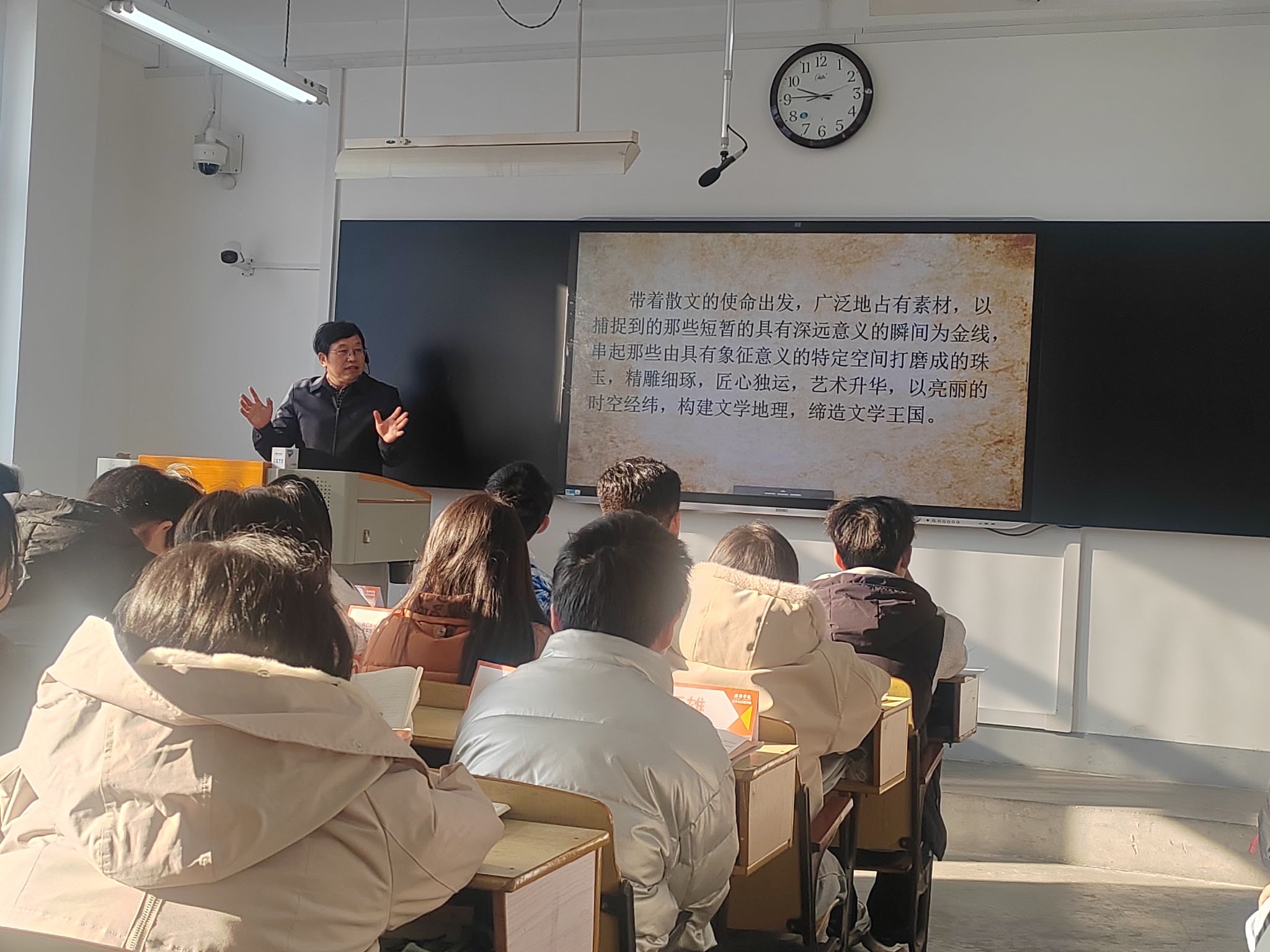 导航痕迹 首页 > 新闻通知 > beats365唯一官方网站新闻 > 正文 beats365唯一官方网站新闻 通知公告 唐友彬应邀与beats365唯一官方网站教师双师同堂开展“基础写作”教学活动 来源:beats365唯一官方网站 发布日期:2025年12月10日 阅读次数: 12月8日上午,作家唐友彬应邀来到江南校区1416教室,与beats365唯一官方网站“基础写作”课程教师韩文霞共同开展“双师同堂”教学。本次课堂面向汉语言文学2025级2班员工,以“散文创作”为核心内容展开讲授。 唐友彬以“散文的时空”为主题,围绕散文的含义、散文的时间、散文的空间、散文的描写手法以及结构等内容展开教授,开篇他引用《文化苦旅》中的美言名段,使散文的美在同学们的心目中绽放;然后将关于散文的时间、空间概念与丰富的作品案例相结合,生动形象地为同学们普及了散文的知识,激发了同学们创作散文的热情。 唐友彬将自身的求学与写作经历与散文的时空观相结合,通过自身丰富的经验教会员工用心灵去感悟生活的时空,用妙笔去书写生活的美好,让员工们了解到散文创作不仅要把握时间上的脉络与节奏,还要展现空间的意境与审美,令员工们受益匪浅。 撰稿/图片提供/姚启晨(员工) 审核/朱云、韩文霞 发布/崔瑜