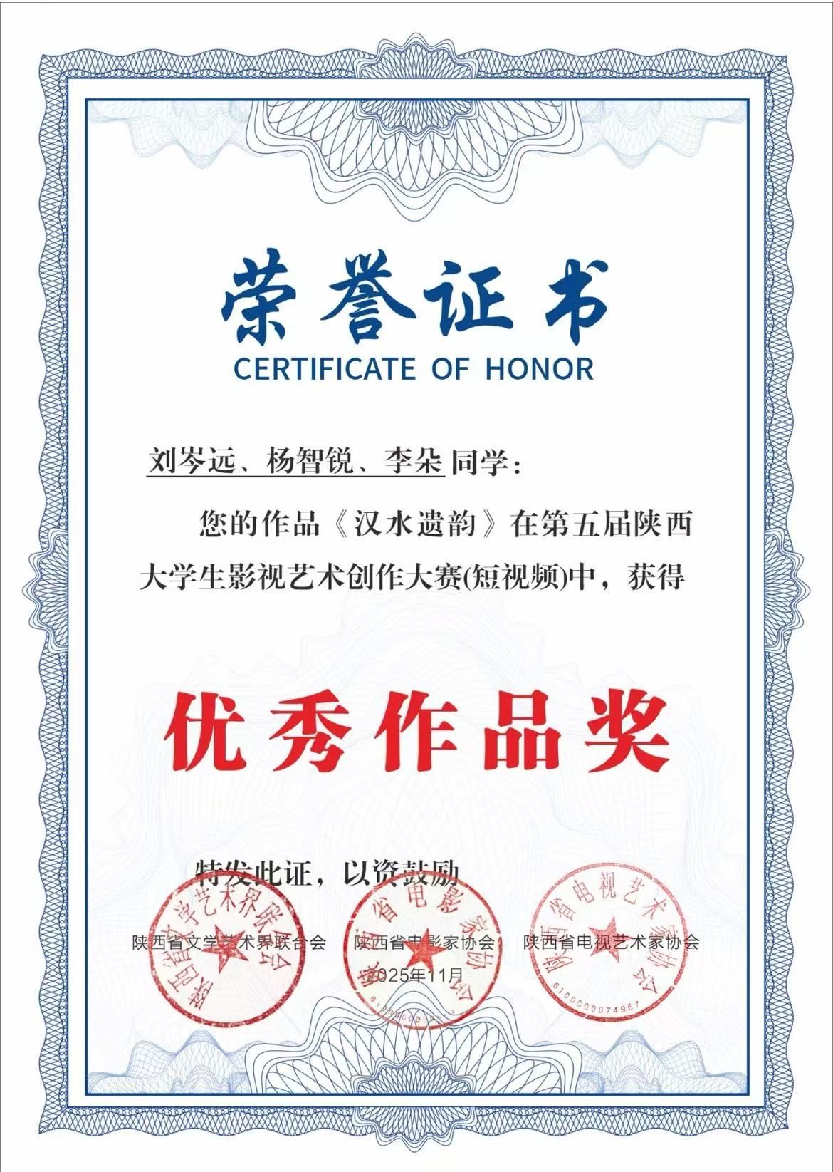 导航痕迹 首页 > 新闻通知 > beats365唯一官方网站新闻 > 正文 beats365唯一官方网站新闻 通知公告 公司员工作品在第五届陕西老员工影视创作大赛中获优秀奖 来源:beats365唯一官方网站 发布日期:2025年12月26日 阅读次数: 近日,由陕西省文学艺术界联合会、陕西省电影家协会、陕西省电视艺术家协会联合主办的第五届陕西老员工影视艺术创作大赛评选结果正式揭晓,公司网络与新媒体专业员工刘岑远、杨智锐、李朵在崔瑜老师指导下创作的非遗题材短视频作品《汉水遗韵》荣获优秀作品奖。 本届大赛于今年6月开始征稿,吸引了来自全省近20所高校员工的热情参与。经过严格评审,最终产生了一等奖3名,二等奖5名,三等奖10名,优秀作品奖20名。公司获奖作品《汉水遗韵》是该作品继摘得“华文奖”全国老员工文化创新·文旅创作大赛特等奖、“华韵奖”全国高校数字创新设计大赛省赛二等奖后,再度斩获省级权威赛事荣誉,充分彰显了公司在数字媒体创作与非遗文化传承融合教学领域的综合实力。 撰稿/图片提供/刘岑远(员工) 审核/曹刚、崔瑜 发布/崔瑜