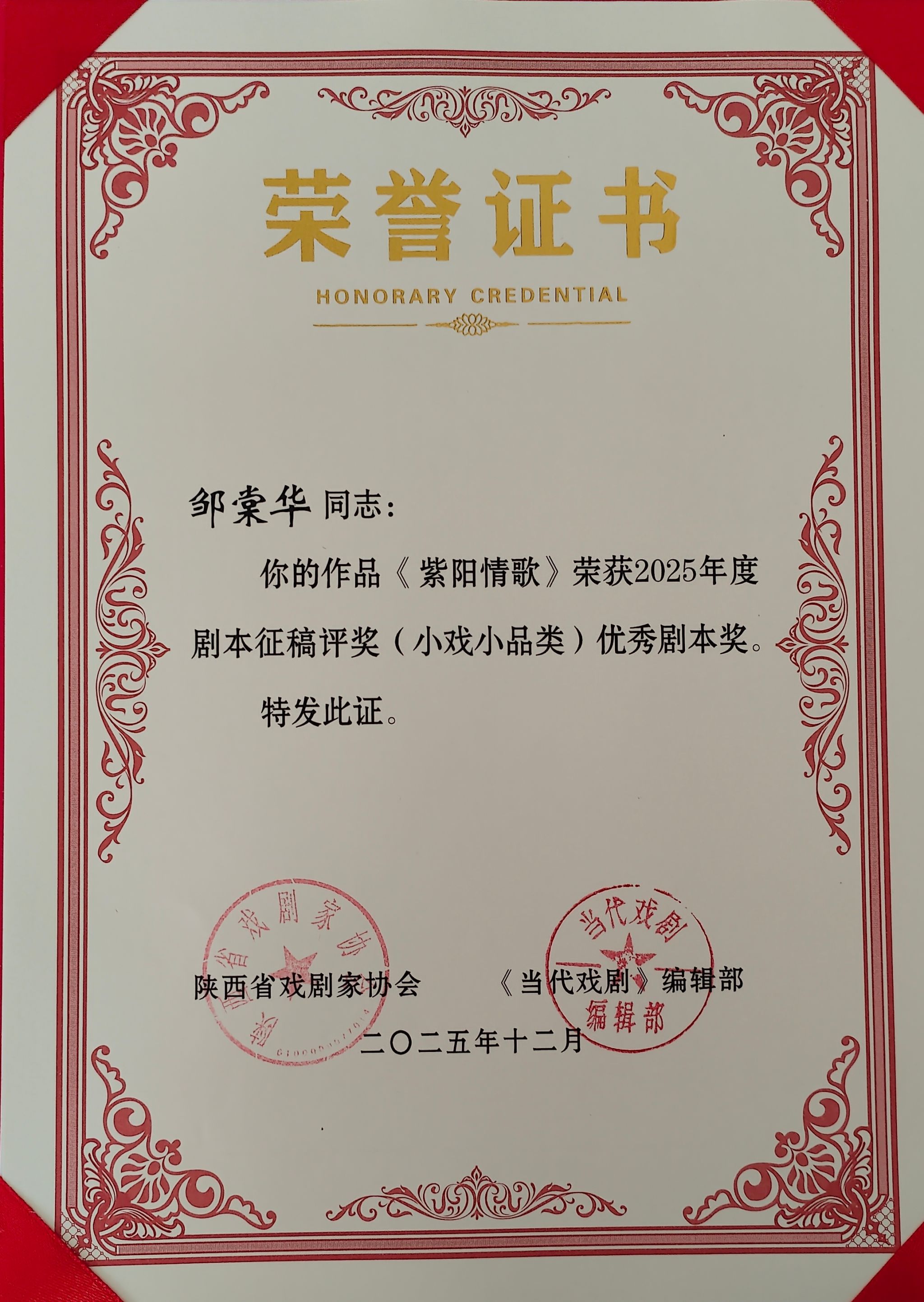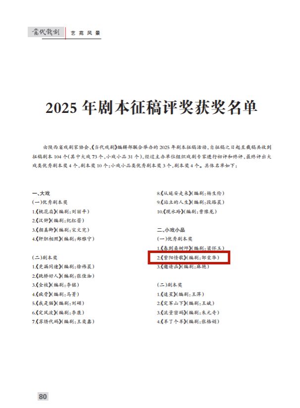 导航痕迹 首页 > 新闻通知 > beats365唯一官方网站新闻 > 正文 beats365唯一官方网站新闻 通知公告 公司教师邹棠华创作的《紫阳情歌》荣获省优秀剧本奖 来源:beats365唯一官方网站 发布日期:2026年01月23日 阅读次数: 近日,由陕西省戏剧家协会、《当代戏剧》编辑部联合举办的2025年剧本征稿活动落下帷幕,公司教师邹棠华创作的民歌剧《紫阳情歌》荣获小戏小品类优秀剧本奖。 本届征稿活动全省共收到戏剧剧本104个,经过主办单位组织戏剧专家初评和终评,最终评出大戏类优秀剧本奖4个,剧本奖10个;小戏小品类优秀剧本奖3个,剧本奖4个。 《紫阳情歌》以汉江重要商埠瓦房店为故事发生地,以辛亥革命前后为时代背景,讲述了四川革命党人罗高川、黄州船帮帮主之子夏知秋与会馆老板的女儿含香、茶花两对年轻人坚贞不渝的爱情故事,将独具特色的紫阳民歌巧妙地融入剧情,使紫阳民歌具有了故事性并结成了有机体,同时将陕南乡土风情、茶文化、航运文化进行了充分展示。评委专家充分肯定了该剧的艺术构思和呈现出来的地方特色,认为是助推安康旅游发展的一部好剧。 撰稿/图片提供/邹棠华 审核/任森龙 发布/崔瑜