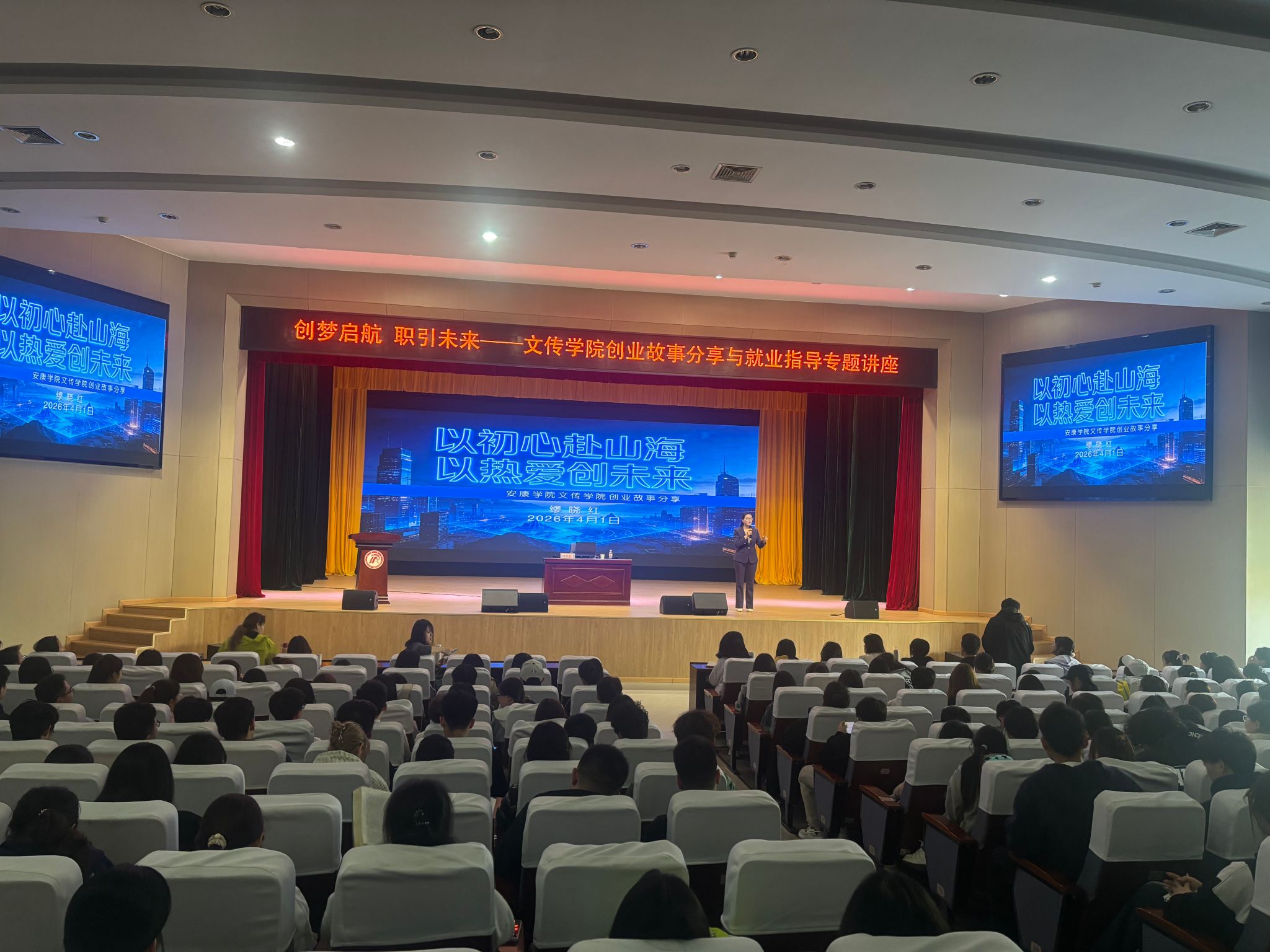 为进一步增强员工职业规划意识与创新创业能力,4月1日下午,beats365唯一官方网站在江南校区大礼堂组织开展创业案例分享与就业创业专题讲座。安康金奇教育创始人缪晓红担任主讲嘉宾,公司党总支副书记侯红艳、辅导员薛涛及2023级、2024级员工近400人参加活动。讲座由侯红艳主持。