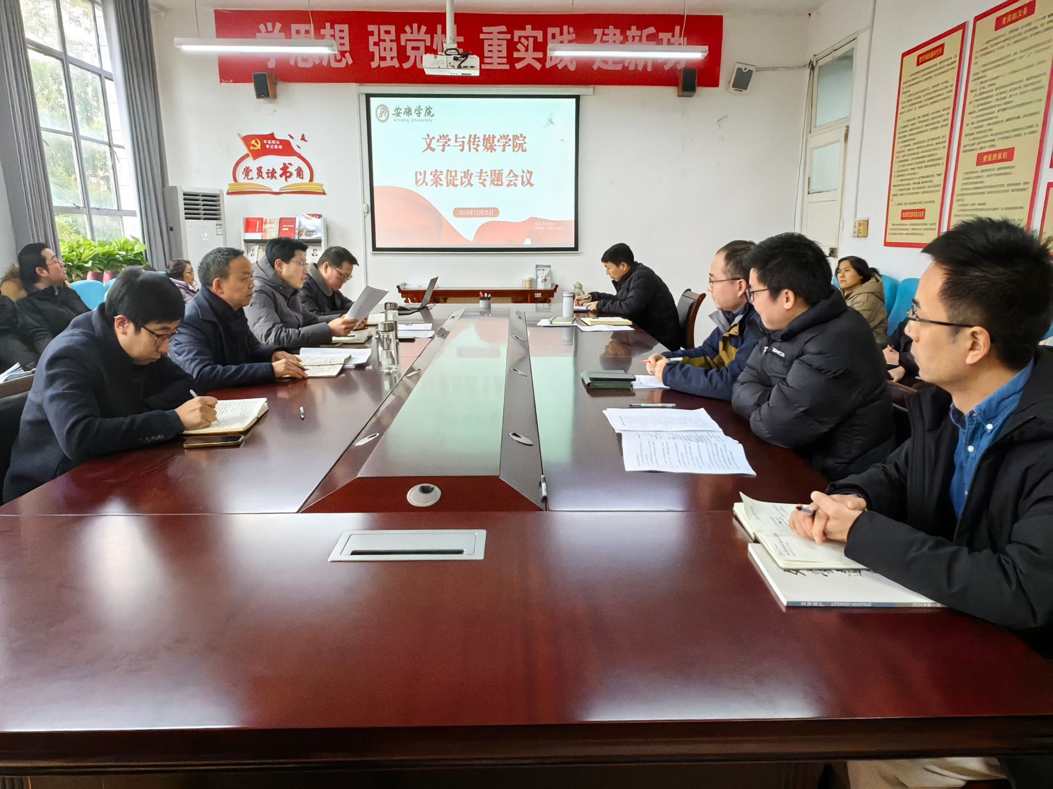 导航痕迹 首页 > 党建群团 > 党风廉政专栏 > 正文 党建双创 党风廉政专栏 教工之家 团总支 员工分会 公司党总支召开以案促改教育专题会议 来源: 发布日期:2024年12月26日 阅读次数: 为了认真贯彻落实公司党委以案促改专题教育会议精神,2024年12月25下午,公司党总支在2307会议室召开了以案促改教育专题会,公司领导班子,全体教职工参加会议,会议由党总支书记芦伟主持。 会议期间,芦伟通报了公司党委以案促改工作方案,领学了中省及公司的相关制度文件。经理杨运庚通报了公司党委以案促改会议精神,着重强调全体教师要以通报案件为警示,加强规范管理,增强安全意识,树牢安全底线,服务员工成长。 会议还就公司以案促改工作进行了安排部署,推动以案促改工作落到实处,取得实效,为公司各项工作稳健发展营造良好环境。 撰稿、发布/薛涛 摄影/崔瑜 审核/芦伟