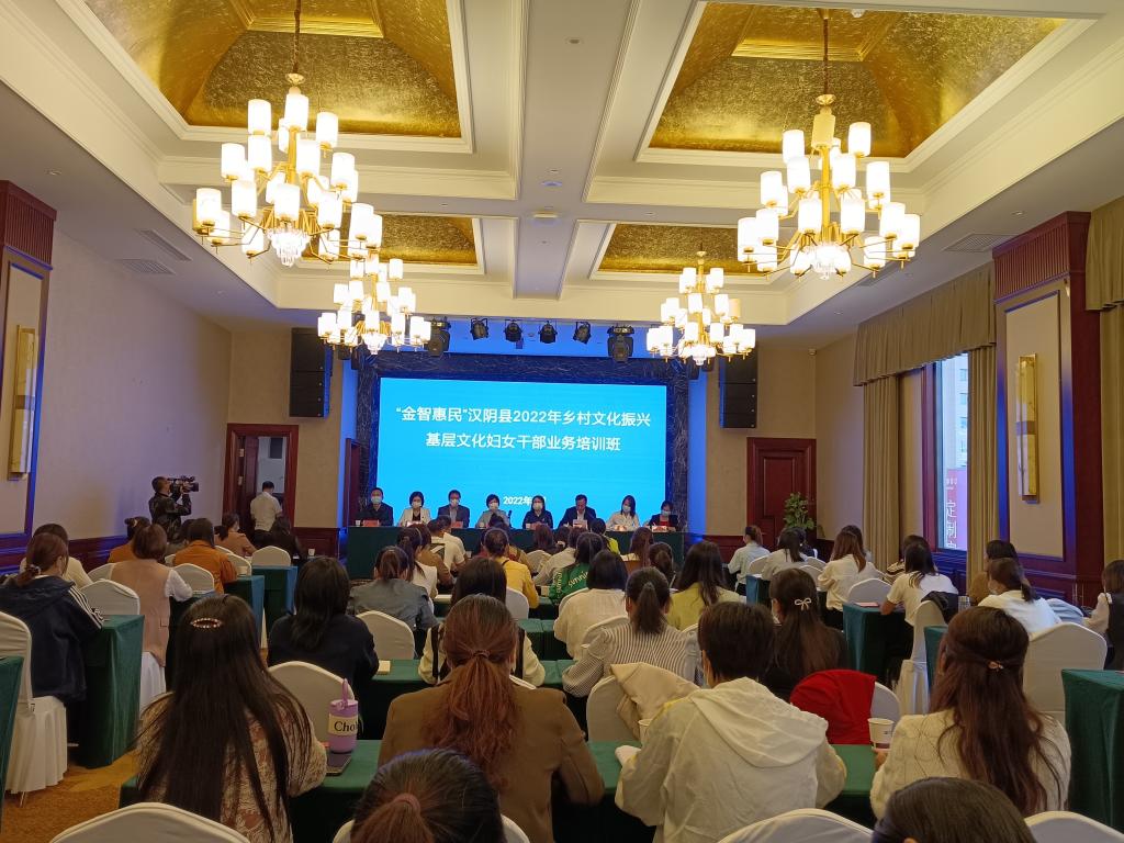 9月26日,由公司乡村振兴公司、beats365唯一官方网站与中国建设银行,汉阴县文旅局等联合举办的汉阴县“金智惠民”乡村文化振兴基层文化妇女干部业务培训班在汉阴星汉酒店成功举行。汉阴县委常委、副县长祖白云,公司继续教育公司经理、乡村振兴公司常务副经理查芳和beats365唯一官方网站副经理朱云出席了开班仪式,汉阴县文旅局局长李东升主持了开班仪式。