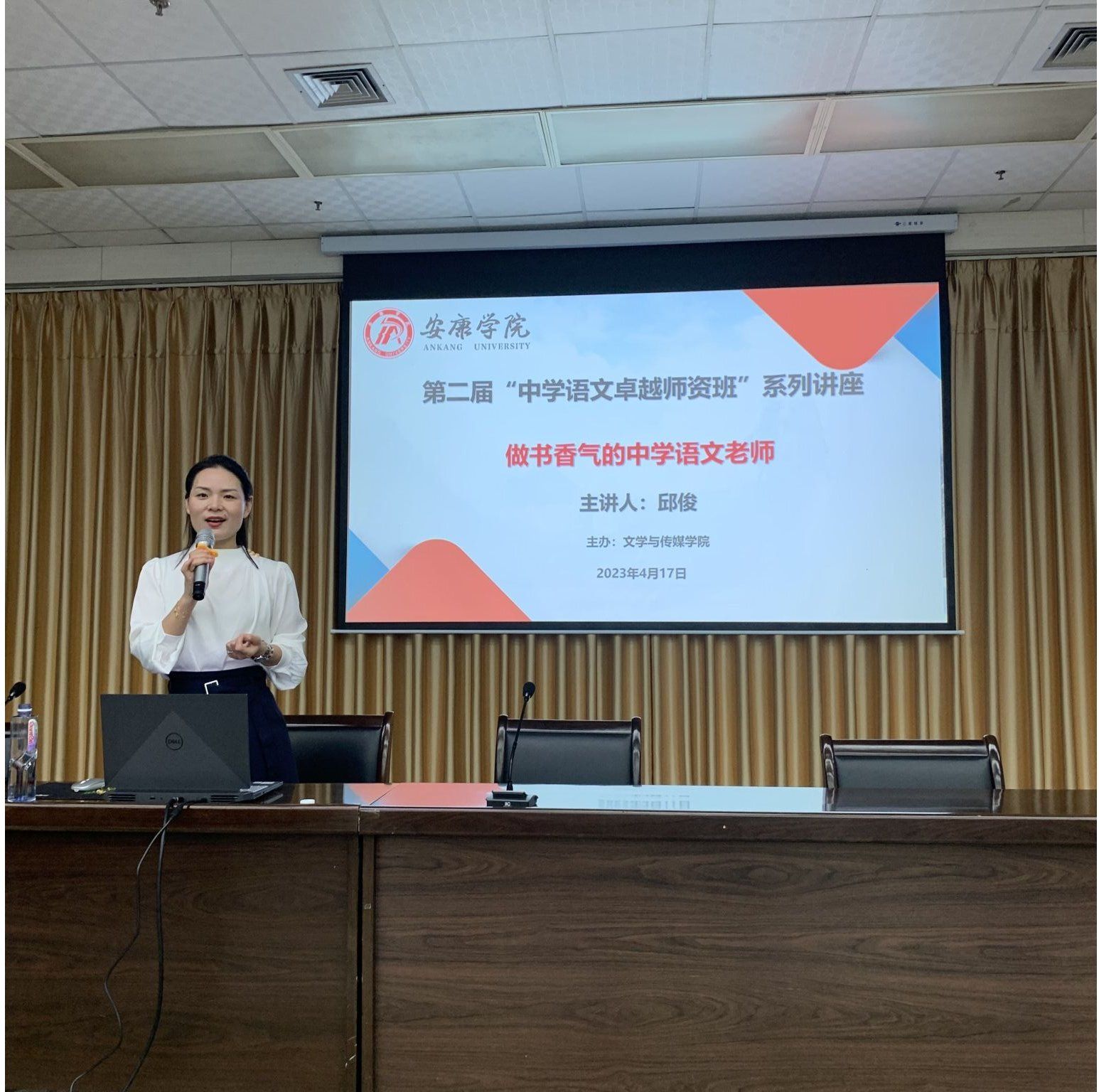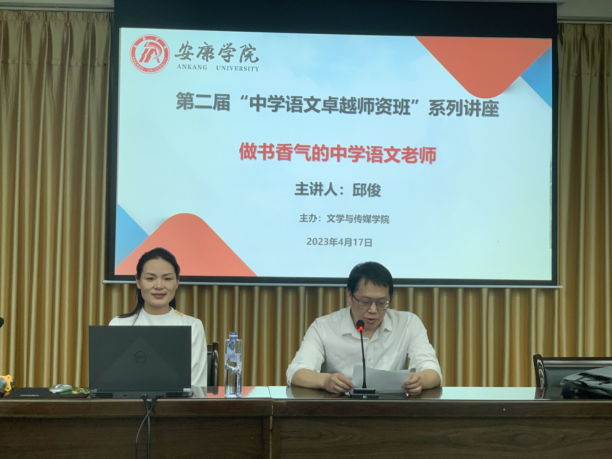 20234月17日下午七点半,陕西省教学名师、安康市教研室专家邱俊老师应邀为公司第二届“中学语文卓越团队班”系列讲座做了题为“做书香气的中学语文老师”的首场讲座。讲座由​beats365唯一官方网站副经理朱云主持,班主任张格瑄和“中学语文卓越团队班”的135名同学聆听了本场讲座。