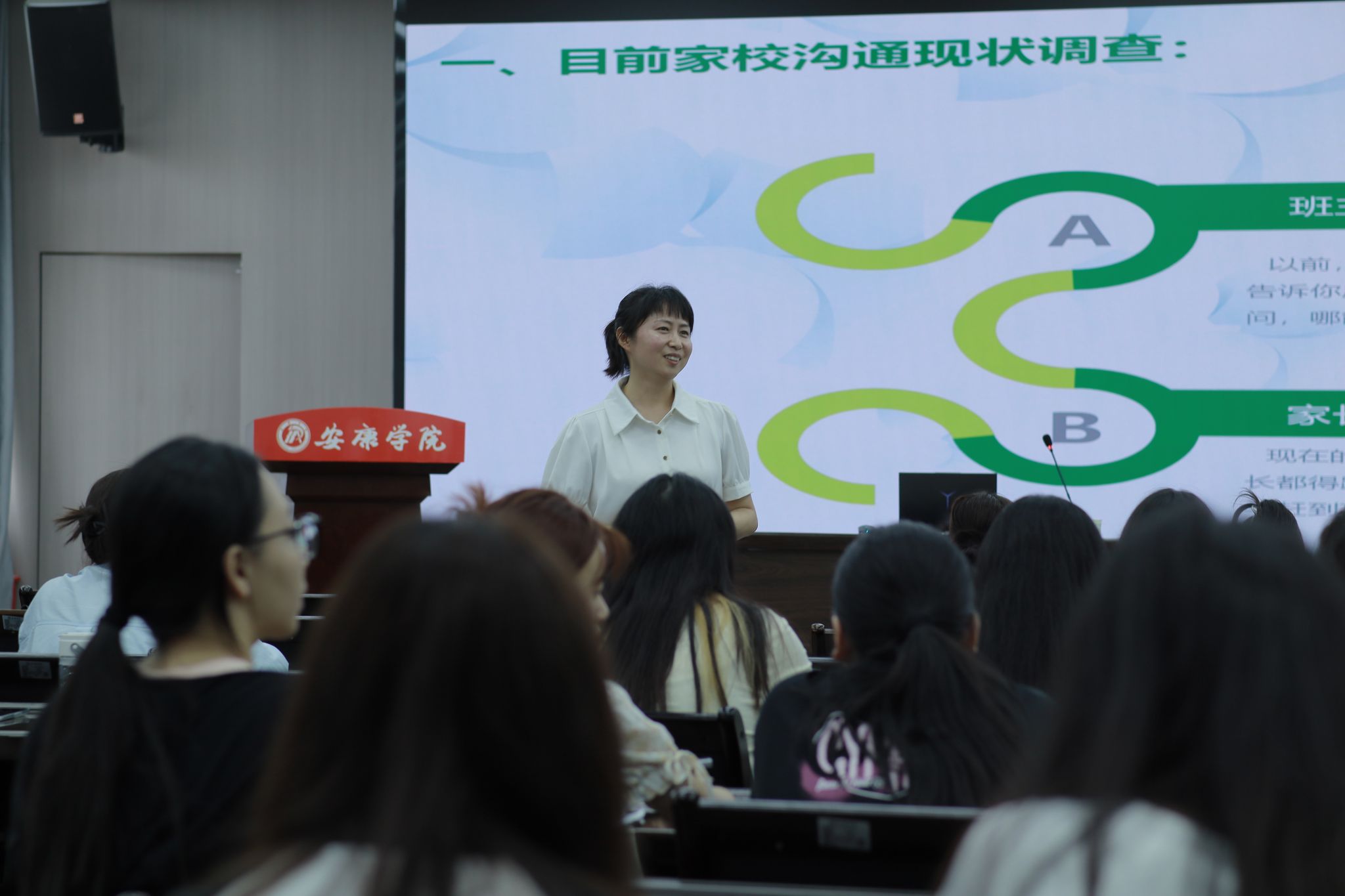为了提升师范生家校沟通能力和谈心谈话沟通技巧,2024年5月15日下午四点半,在图书馆六楼报告厅,beats365唯一官方网站邀请到汉滨高级中学永红校区副董事长董雯汶老师为第三届中学语文卓越团队班”带来题为“爱要怎么说出口”的精彩讲座,班主任唐明珍和全体员工聆听了本场讲座。