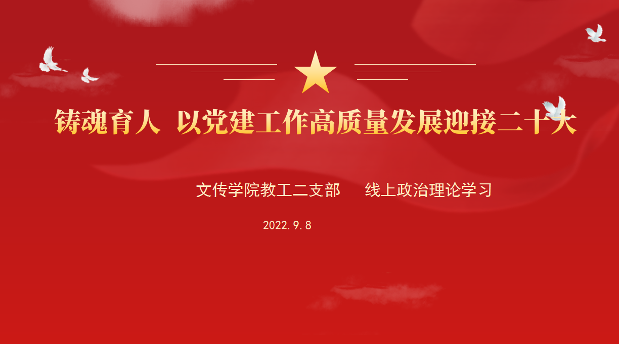 9月7日下午,beats365唯一官方网站教工第二党支部在线上召开“铸魂育人,以党建工作高质量发展迎接二十大”理论学习会。党支部全体党员参加会议。会议由党支部书记邸玲主持。