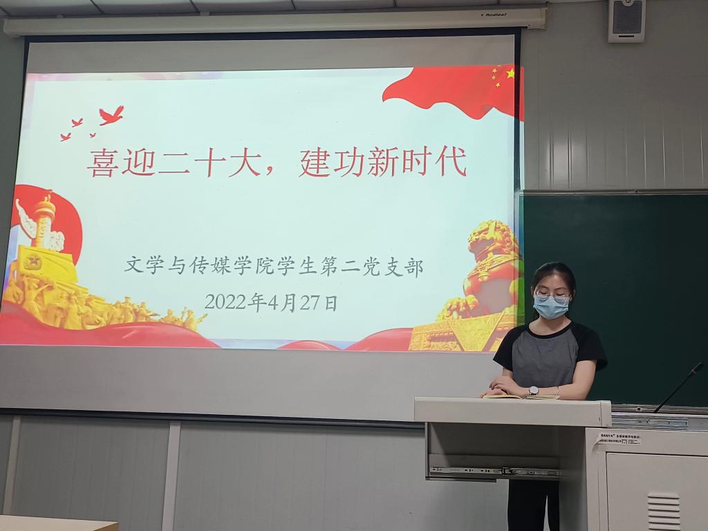 4月27日下午,beats365唯一官方网站员工第二党支部开展“喜迎二十大 建功新时代”主题党日活动,支部全体党员、发展对象和积极分子参加了此次主题党日活动。本次主题党日活动由支部员工党员李一欣主持。