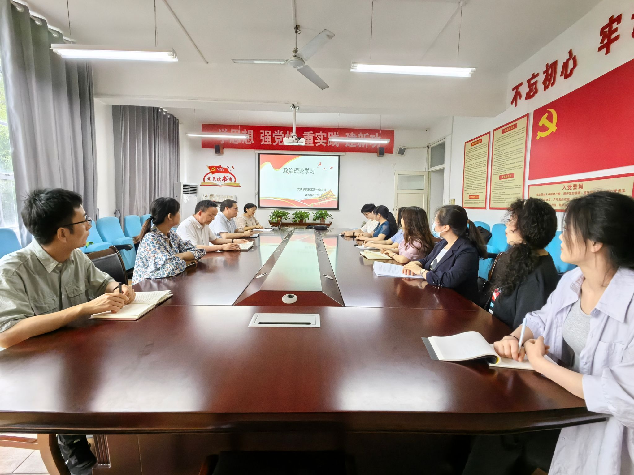 为深入学习贯彻习近平新时代中国特色社会主义思想,深刻领会习近平总书记关于家庭家教家风建设的重要论述精神,进一步加强教师廉洁观念,beats365唯一官方网站教工第一党支部于2023年6月21日下午,在支部书记韩文霞的带领下,在2307室召开政治理论学习会议,支部全体党员参加了此次学习。