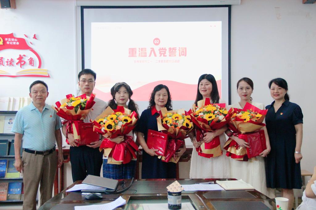 活动中,公司党总支副书记杨海蓉宣读了庆祝“政治生日”党员名单,并与beats365唯一官方网站经理、党总支副书记杨运庚一起为过“政治生日”的党员教师赠送了学习笔记本、党徽、鲜花等政治生日礼物,并向他们致以诚挚祝福。初心易得,始终难守。赵桃、况汉英、张格瑄、盘珊君、黄治强五位过政治生日的党员教师现场分享入党故事,畅谈了自己成长历程和入党以来的感受和体会,结合未来努力方向许下自己的“政治生日愿望”。